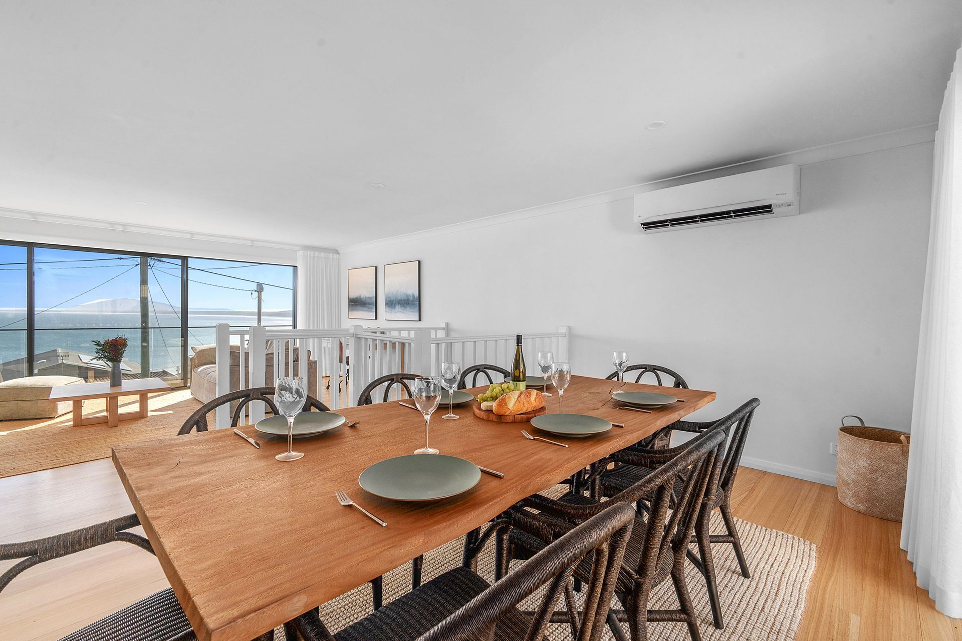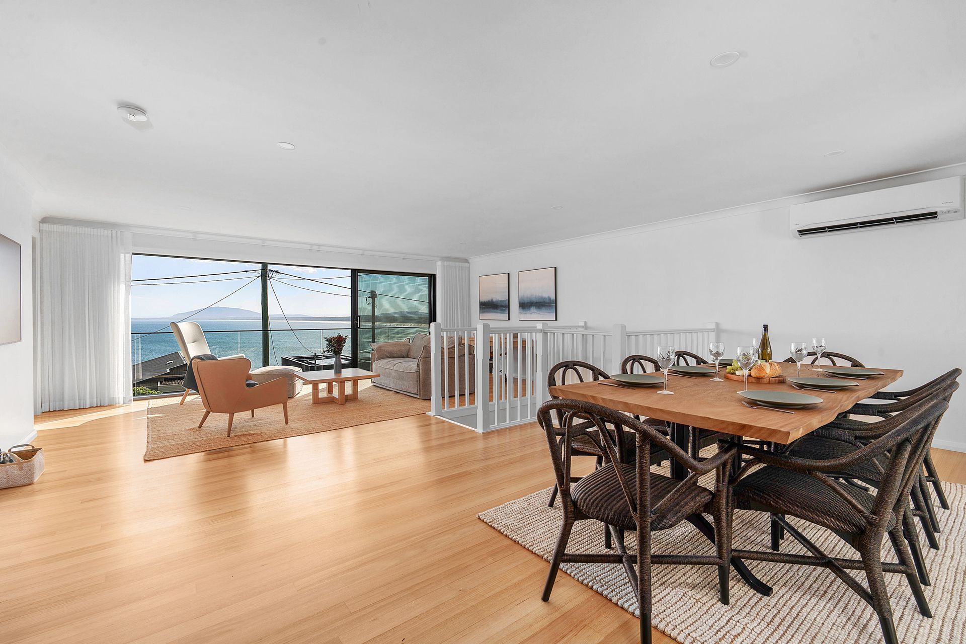 Panorama has reverse cycle air conditioning in the upstairs open plan kitchen, living and dining area. All of the bedrooms have ceiling fans. The home can also be opened up to make the most of the sea breeze.