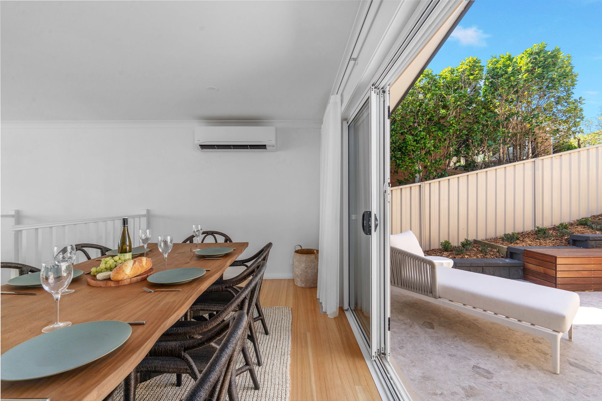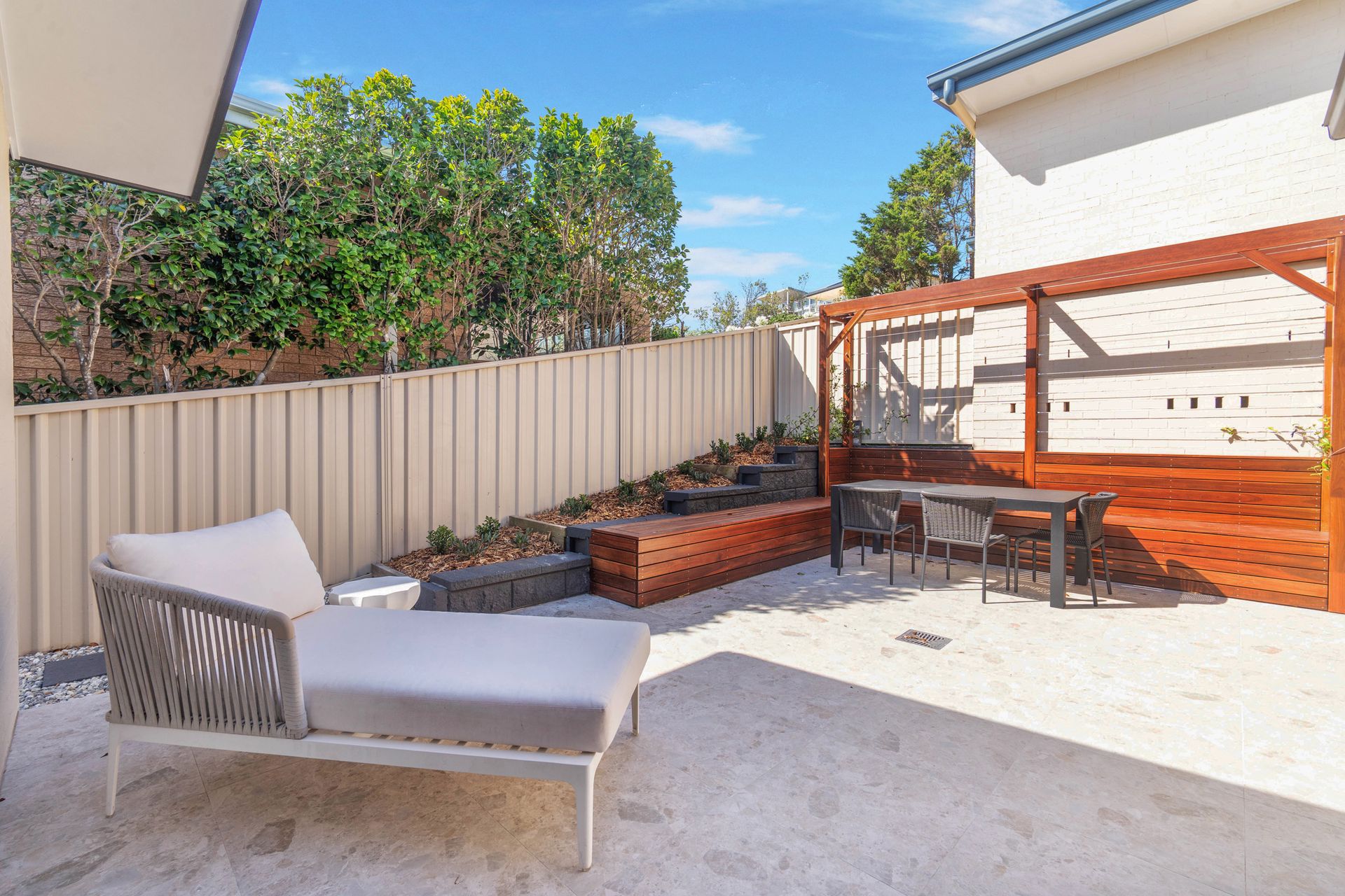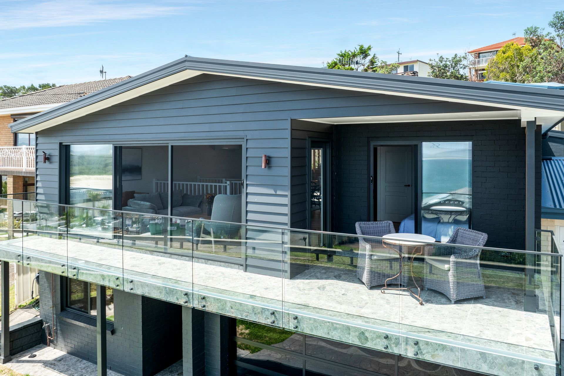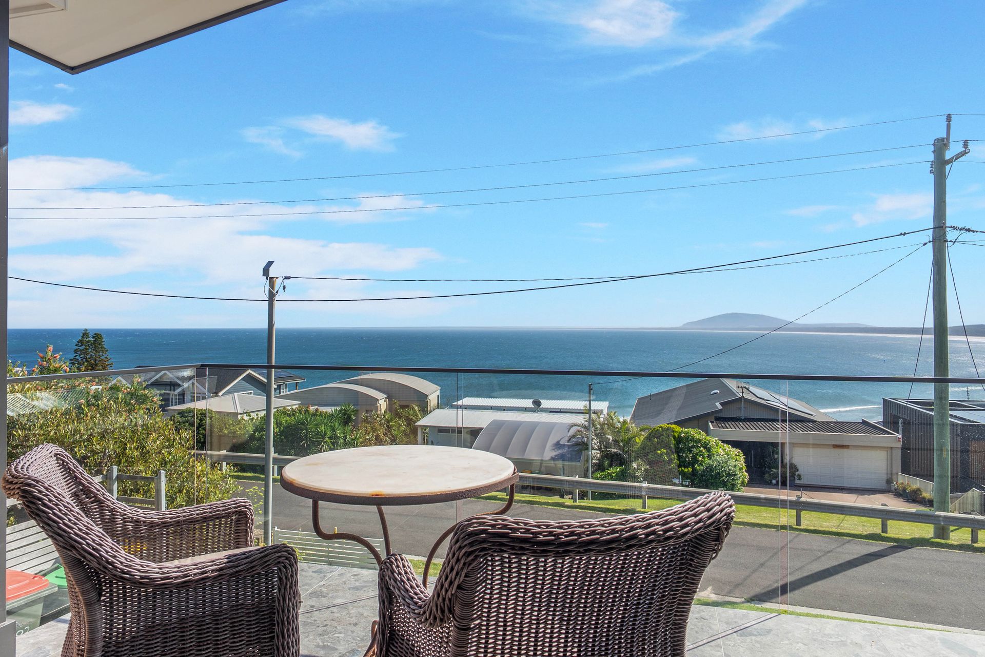 At the rear of Panorama is a sun drenched, secure courtyard. There is a dining table and plenty of seating to enjoy meals alfresco style, and there are loungers perfect for relaxing. The front of the property has a balcony - take a seat and enjoy the ocean views!