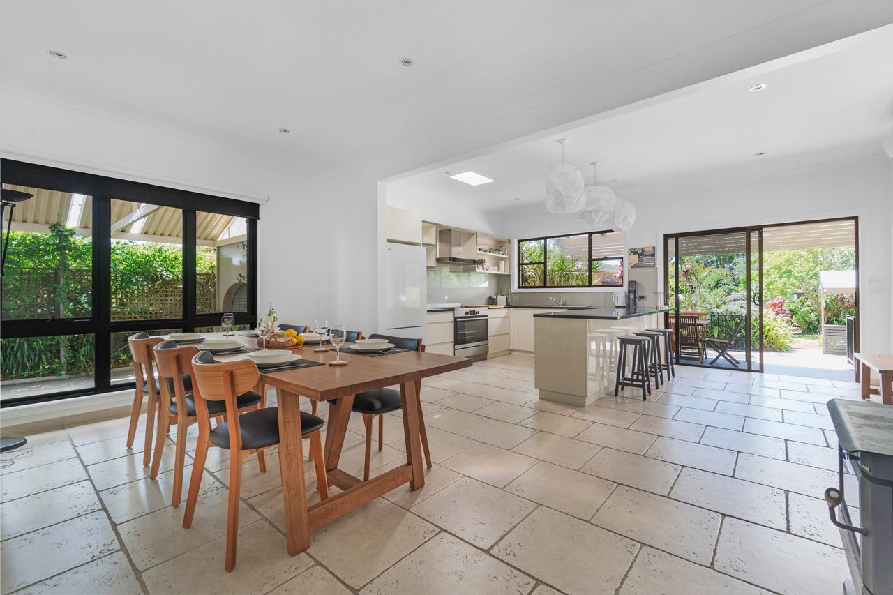 Allegra is a spacious, comfortable home with fresh interiors and stylish furniture. The undercover deck with dining table, BBQ and lounge looks out to the large backyard with outdoor shower that kids will love to explore. The open plan kitchen with breakfast bar seating and dining room will fit the whole family comfortably! Allegra is a combination of style, comfort and convenience.