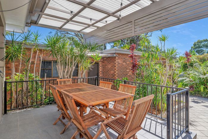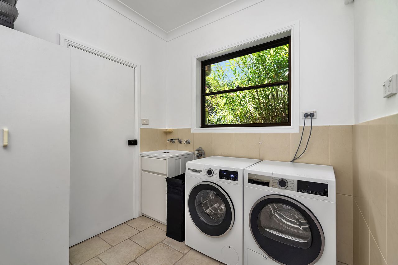 Allegra at Huskisson boasts a spacious backyard designed for both relaxation and family fun. A covered patio provides the perfect spot for outdoor dining or unwinding with a drink, while the large paved area offers plenty of space for entertaining. The beautifully established gardens create a sense of privacy and tranquility. A generous lawn area invites play and leisure, making it an ideal outdoor space for children, family gatherings, or simply enjoying the fresh coastal air. The outdoor shower makes it was to rinse off the sand after being at the beach.