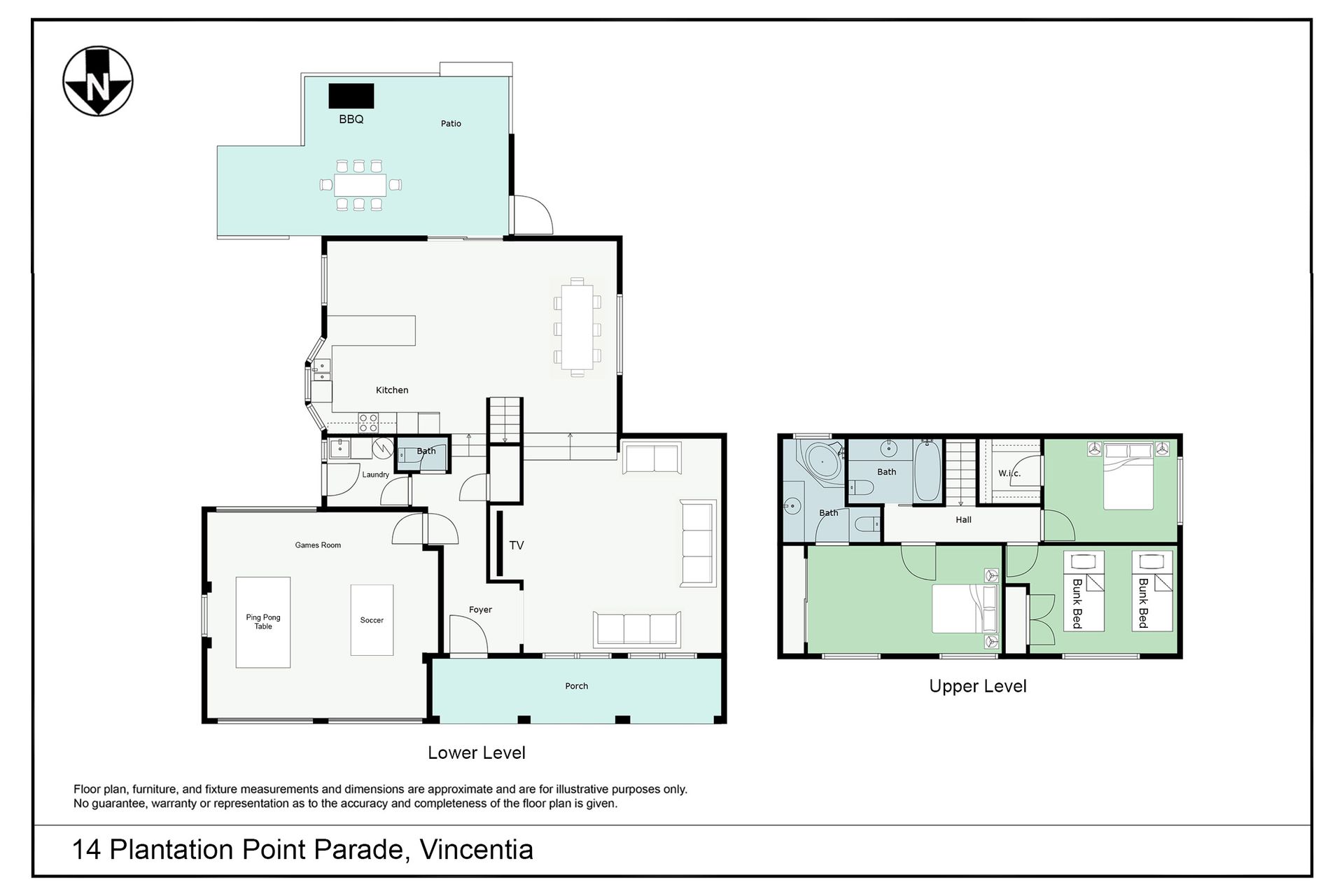 Arches by the Sea is a two storey house with the living area downstairs and the bedrooms upstairs. Downstairs is a large lounge room with TV, and a separate fully-equipped kitchen with breakfast bar and dining area. The kitchen opens onto a patio area with an undercover table and chairs, BBQ and a grassy area where the kids can play. The laundry is located off the kitchen area. The garage has been converted to a games room with foosball, table tennis table and darts.
