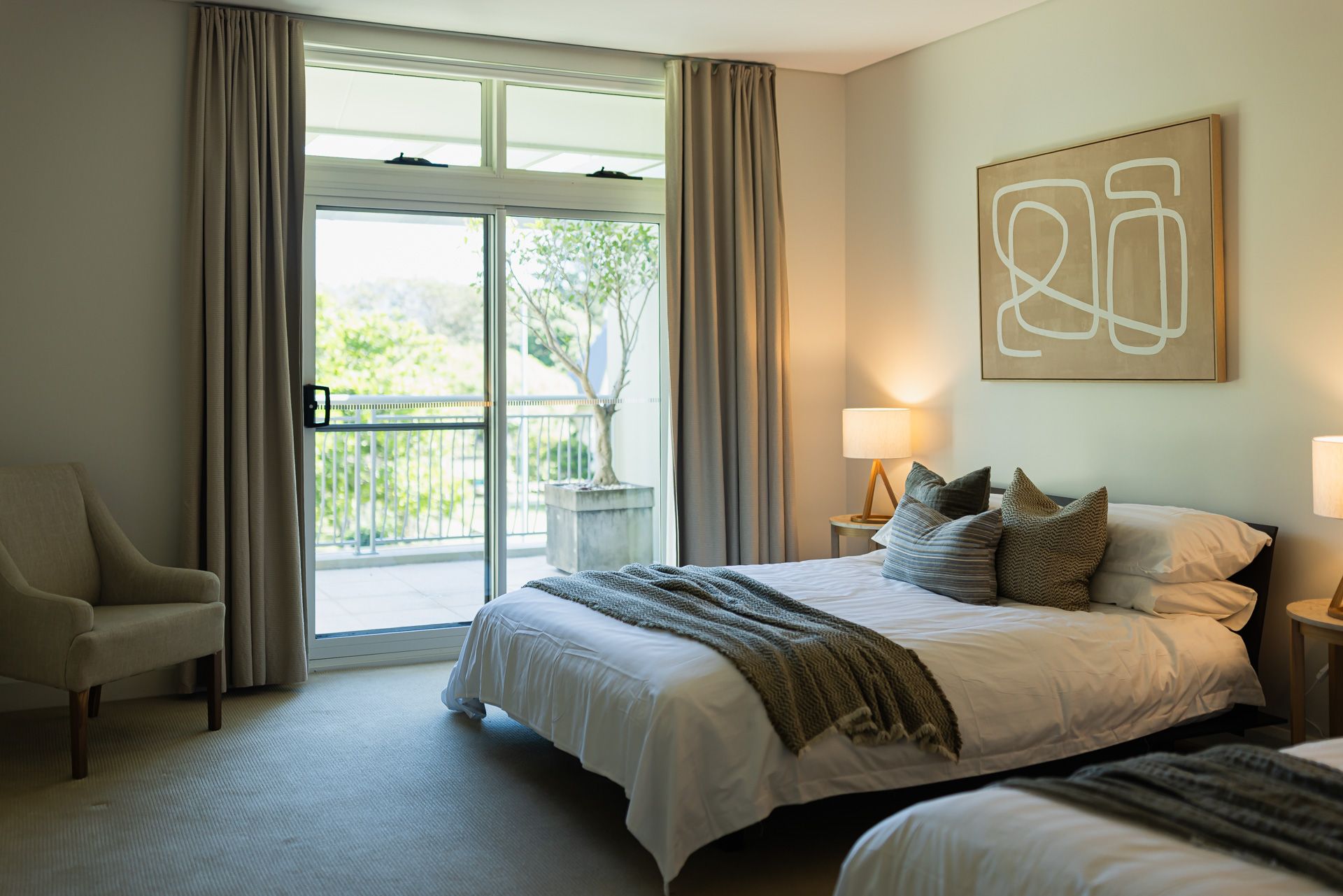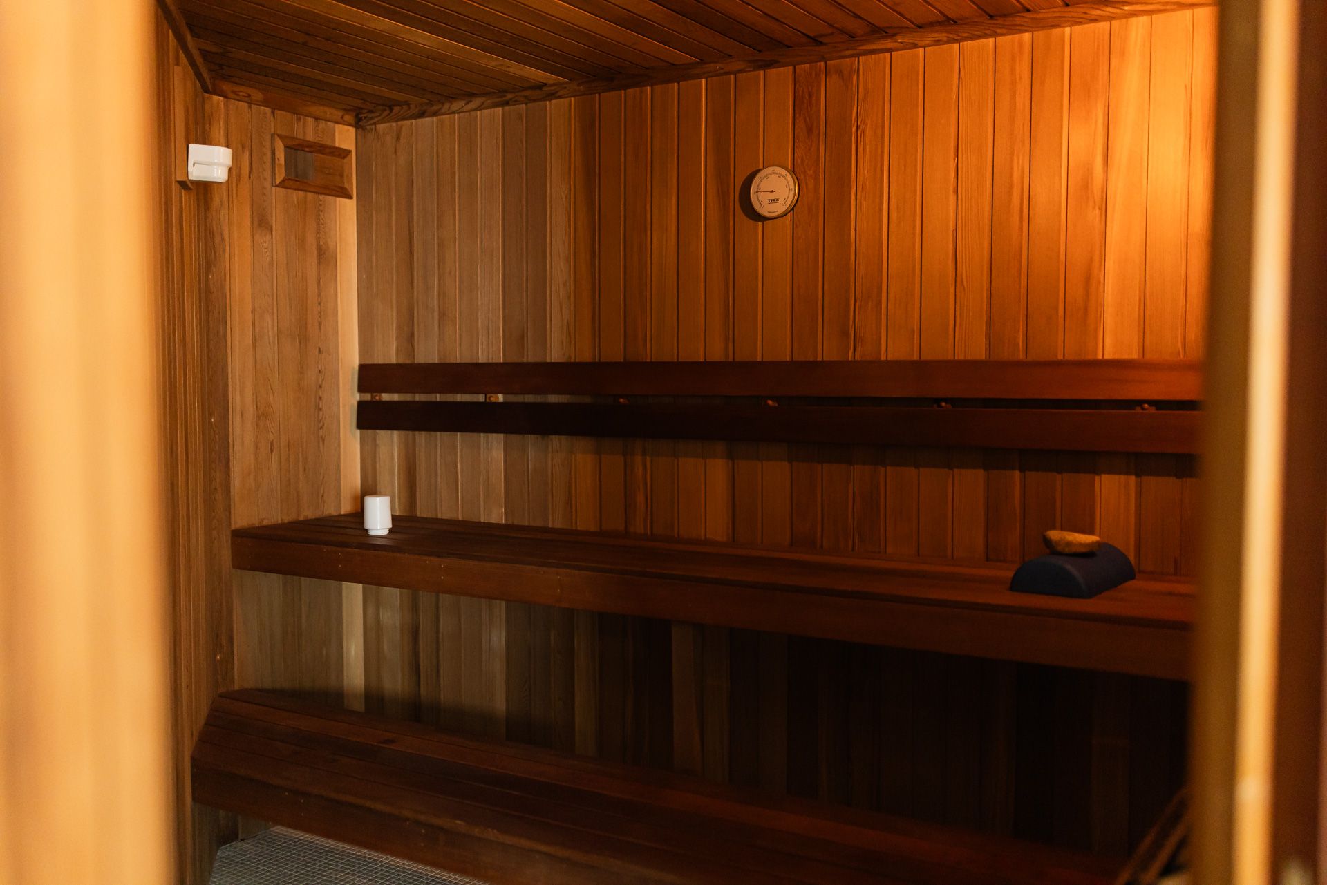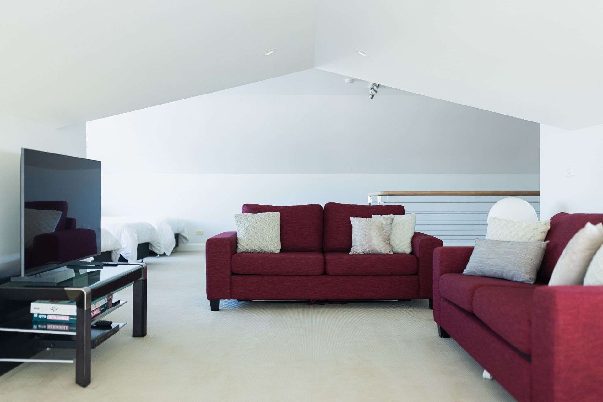 Azzurro is a multi level apartment. The lower level has a large open plan kitchen, living and dining area with floor to window ceilings that take in the amazing views. The next level has the master with a king bed and an ensuite with a sauna, as well as the two other bedrooms and the main bathroom. The large media room is also on this level and is the perfect place to unwind. The upstairs 'attic' room has four king singles. There is a walkway with voids on either side (with safety railings) that leads to a small balcony.