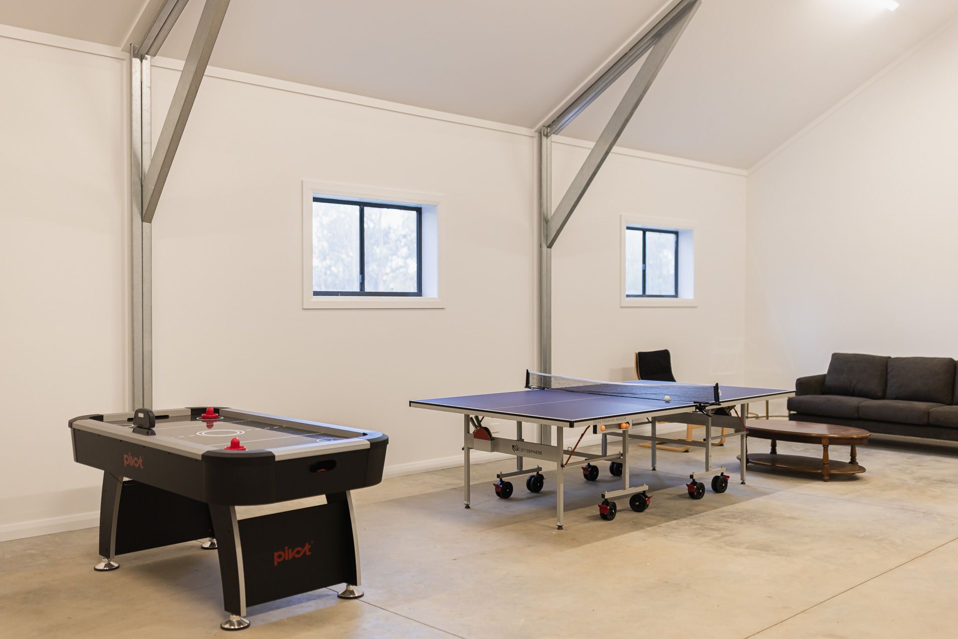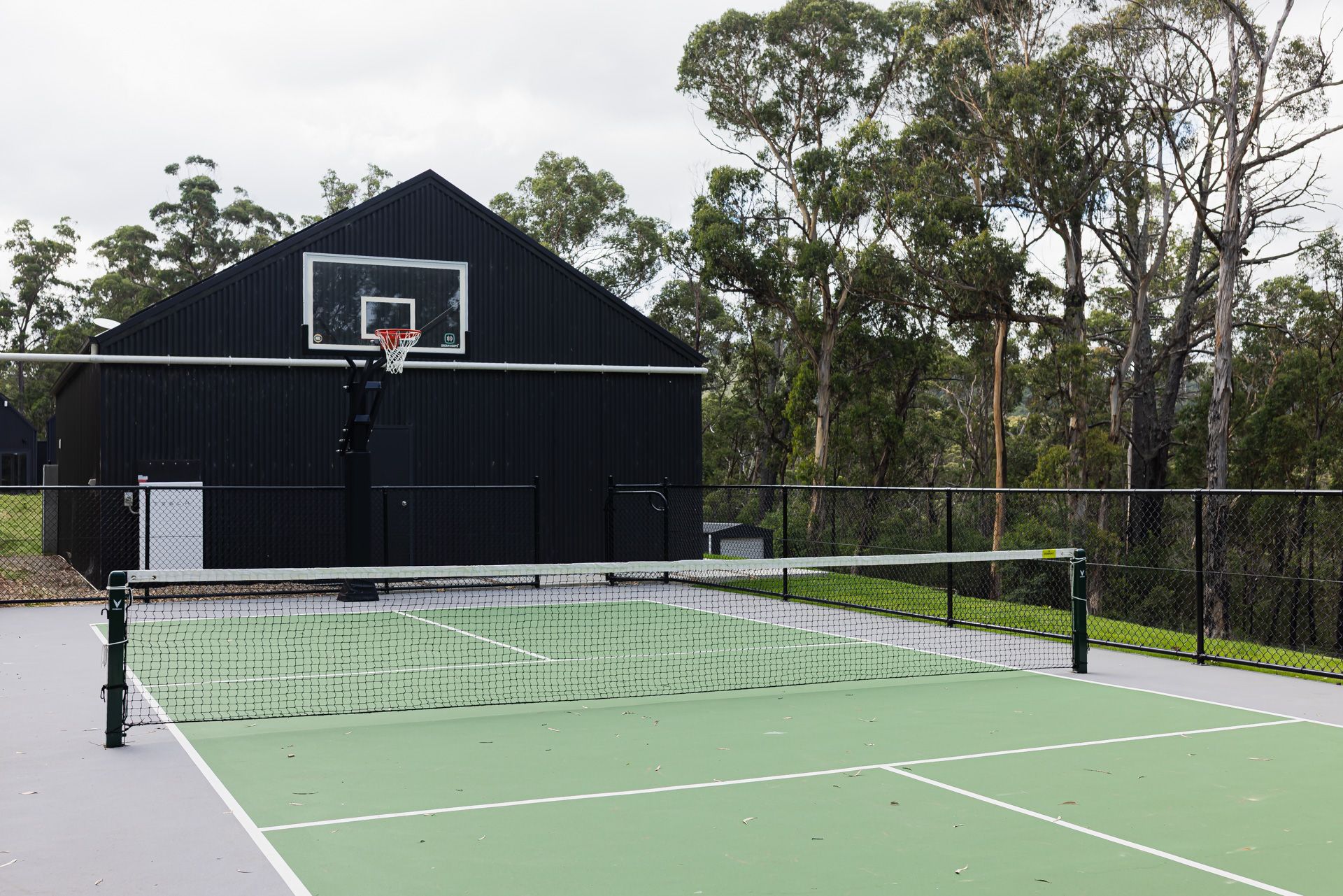 Quality is evident everywhere at Balangara. Polished concrete floors, steel, brick and brass fittings and the bespoke timber benchtops all contribute to the luxurious atmosphere. Soaring ceilings and oversized windows bring the outside in, and fill the property with natural light. Not to mention the large spa that overlooks the beautiful bushland, a massive games room with snooker, table tennis and fussball, as well as a pickleball court with basketball hoop!