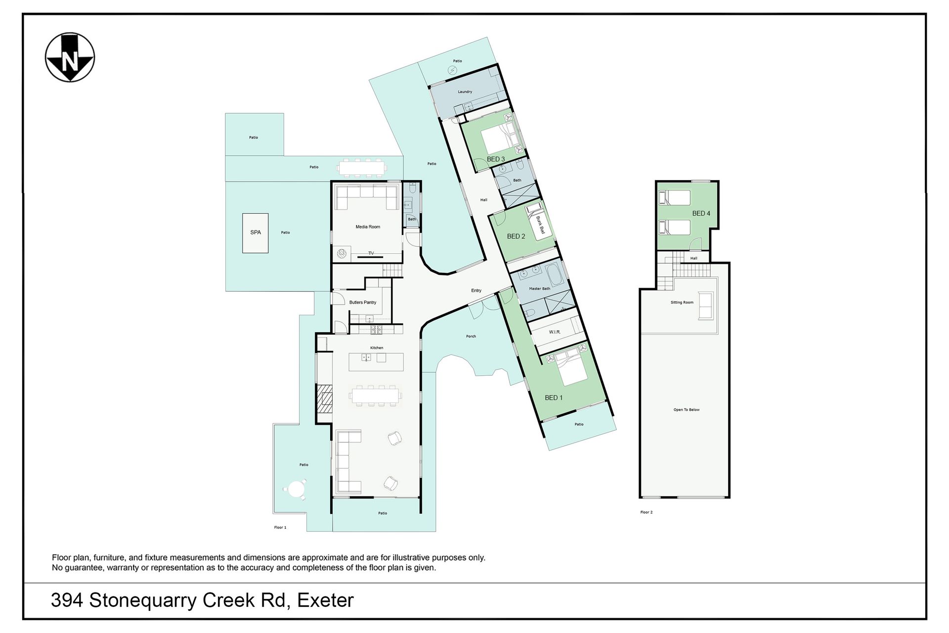 Balangara is a home with two 'wings'. In one wing you have the open plan kitchen, living and dining area, the media room and a separate toilet. Upstairs in the same wing is a bedroom and mezzanine style study. In the other wing are 3 bedrooms, including the master with its impressive ensuite, the main bathroom and laundry.