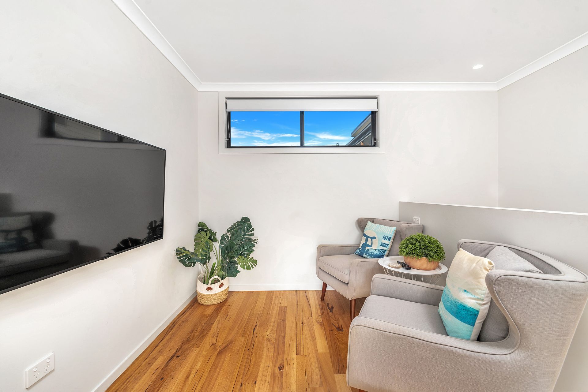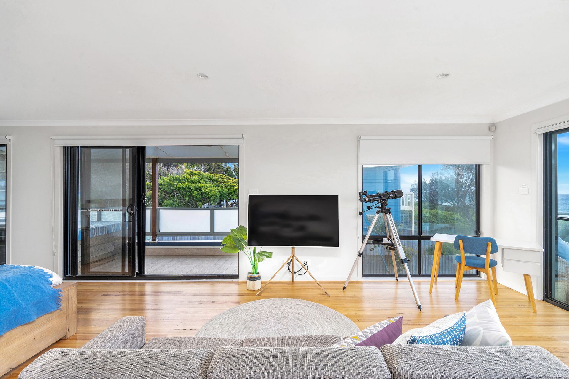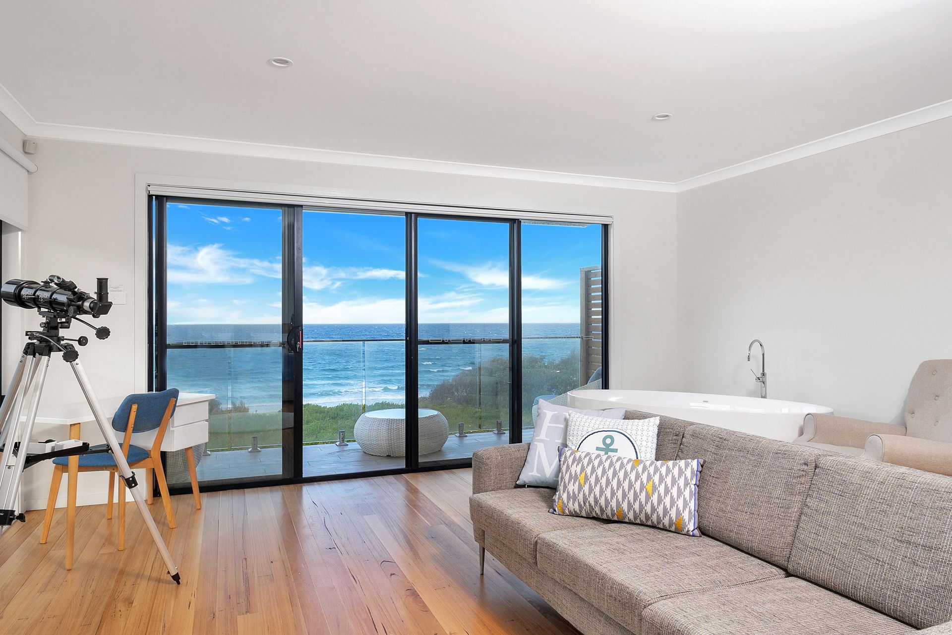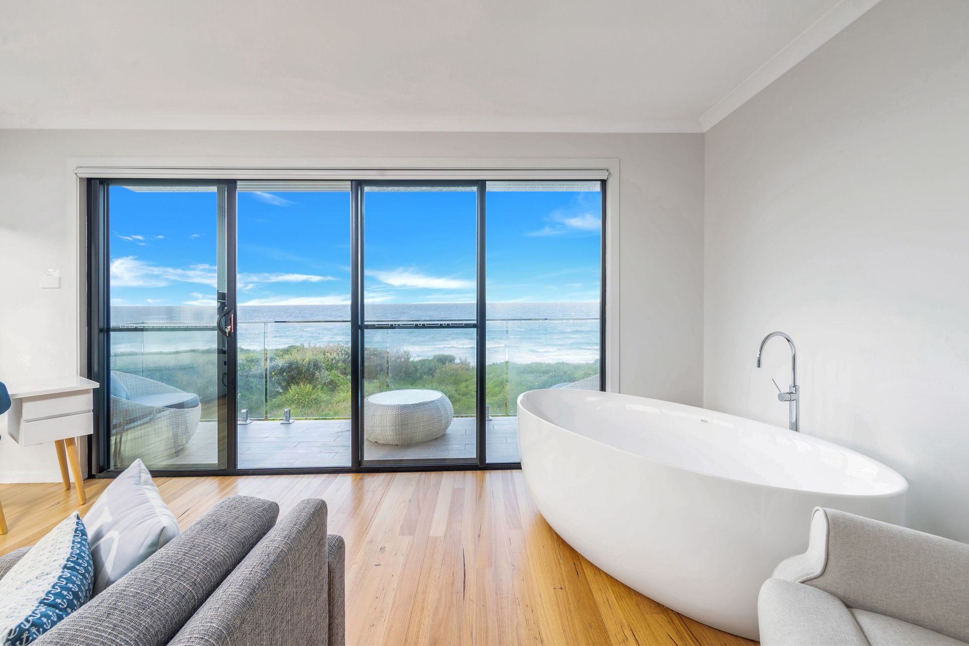 Beach Perfect is a stunning, modern 5 bedroom, 5 bathroom house with fantastic indoor outdoor options, located on the beachfont at Culburra Beach, with beach access via the nearby council path. The whole upper level of the house is a generous master bedroom suite, complete with a freestanding bath that has beautiful ocean views. This luxurious home has many entertaining areas, a media room and a fully equipped gym room.