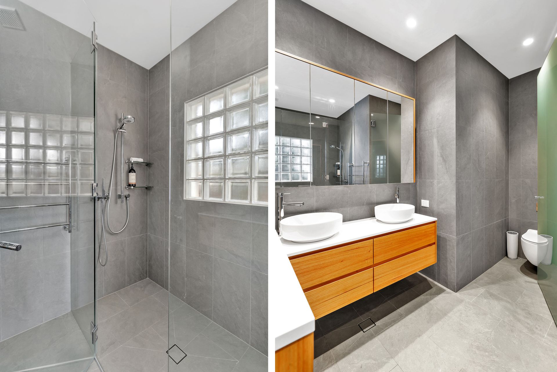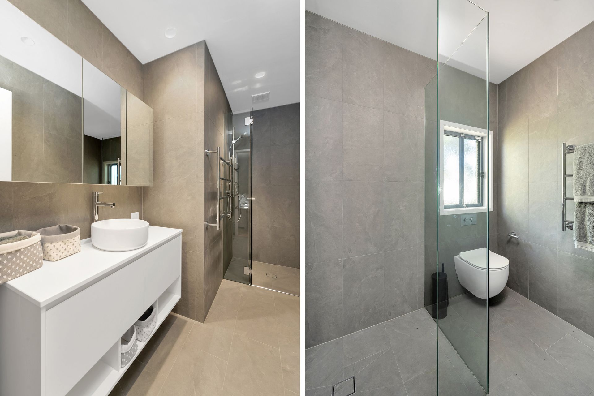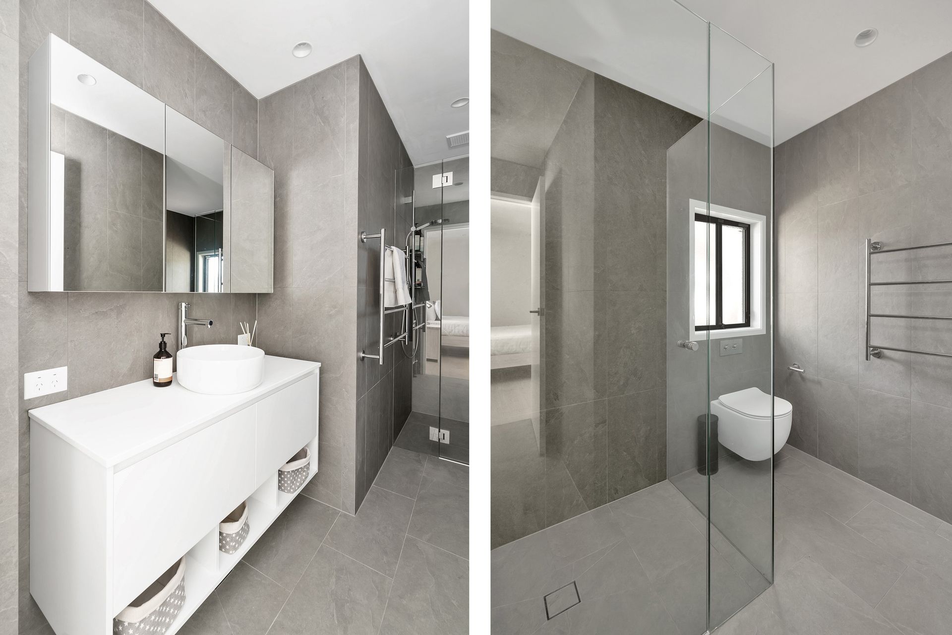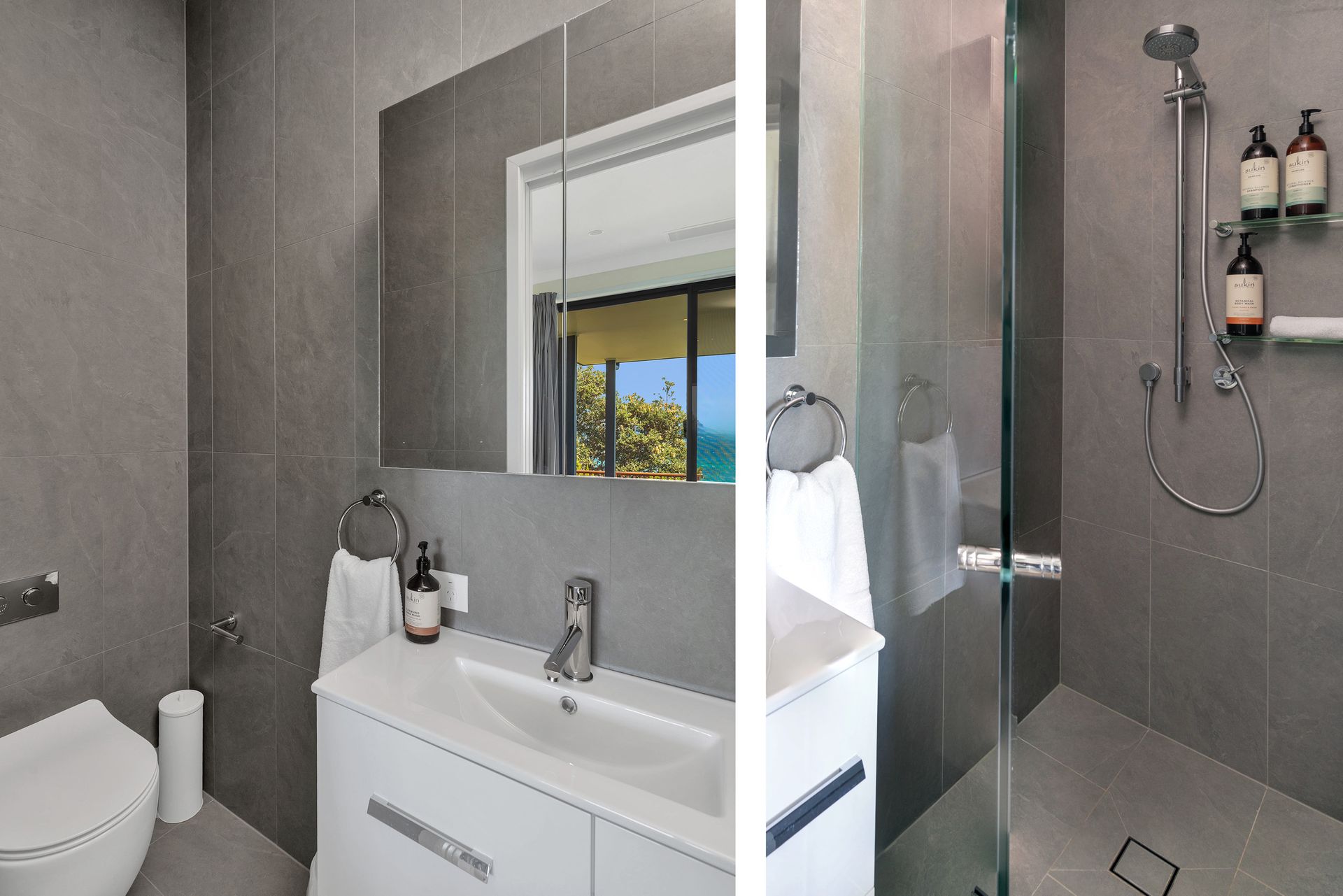 Bellevue at Hyams is set over one level. The front door leads straight into a large open plan kitchen, dining and lounge area with stunning views over Jervis Bay. There are 1 king, 2 queen bedrooms, 1 double bedroom, all with ensuites, a totally separate 5th bedroom with 1 queen and 1 king singles and private bathroom. And there is a 6th guest bathroom as well. The layout is fantastic, as per the floor plan provided.