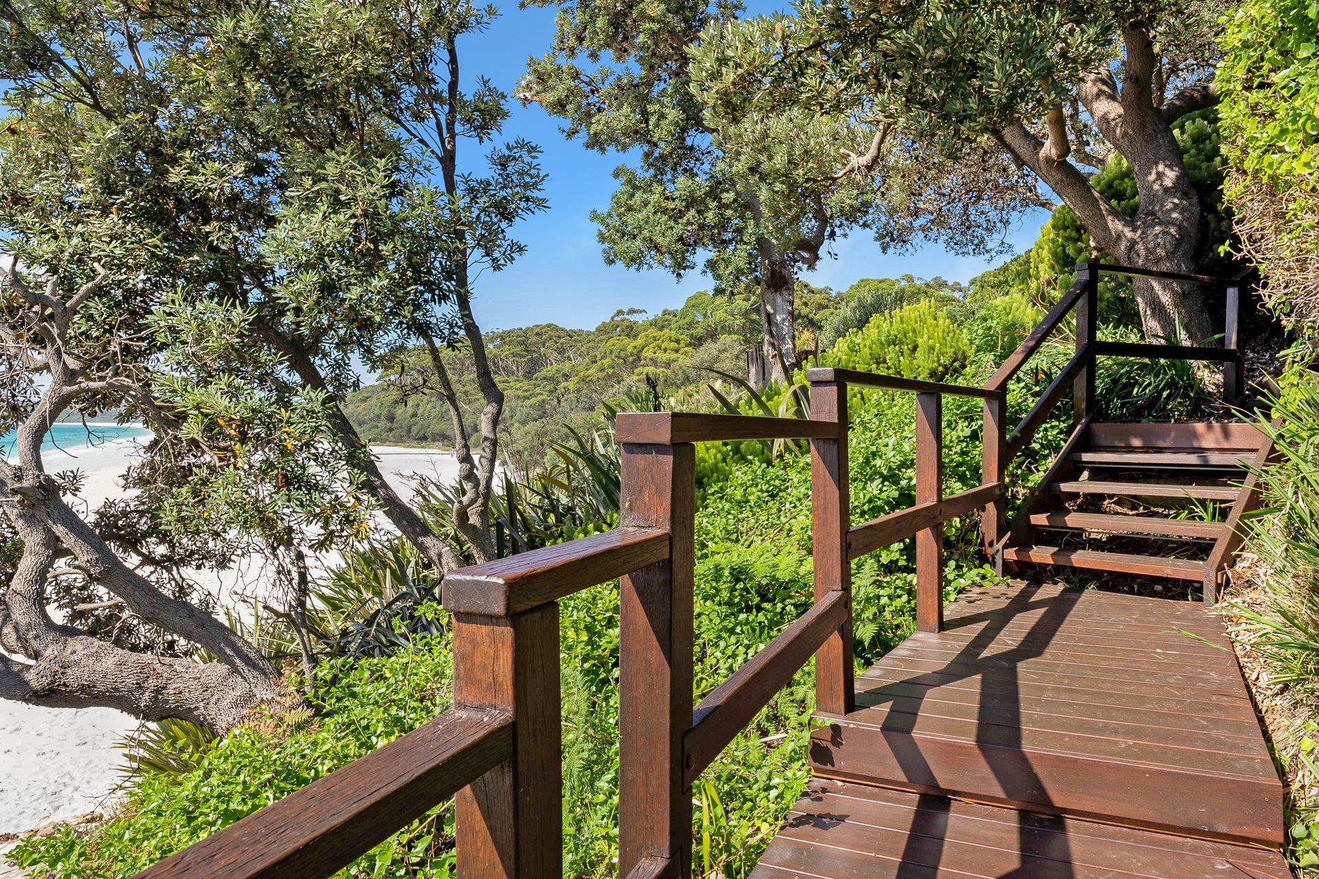 Bellevue at Hyams is very centrally located in the village, immediately behind the Hyams Beach Cafe. Due to its long driveway, it still enjoys privacy and tranquility behind a secure gate, and stands atop the cliffs that separate Little Hyams Beach from main beach. The private stairs lead to the northern end of the main beach for your to enjoy the full 2.5km stretch of white sand.