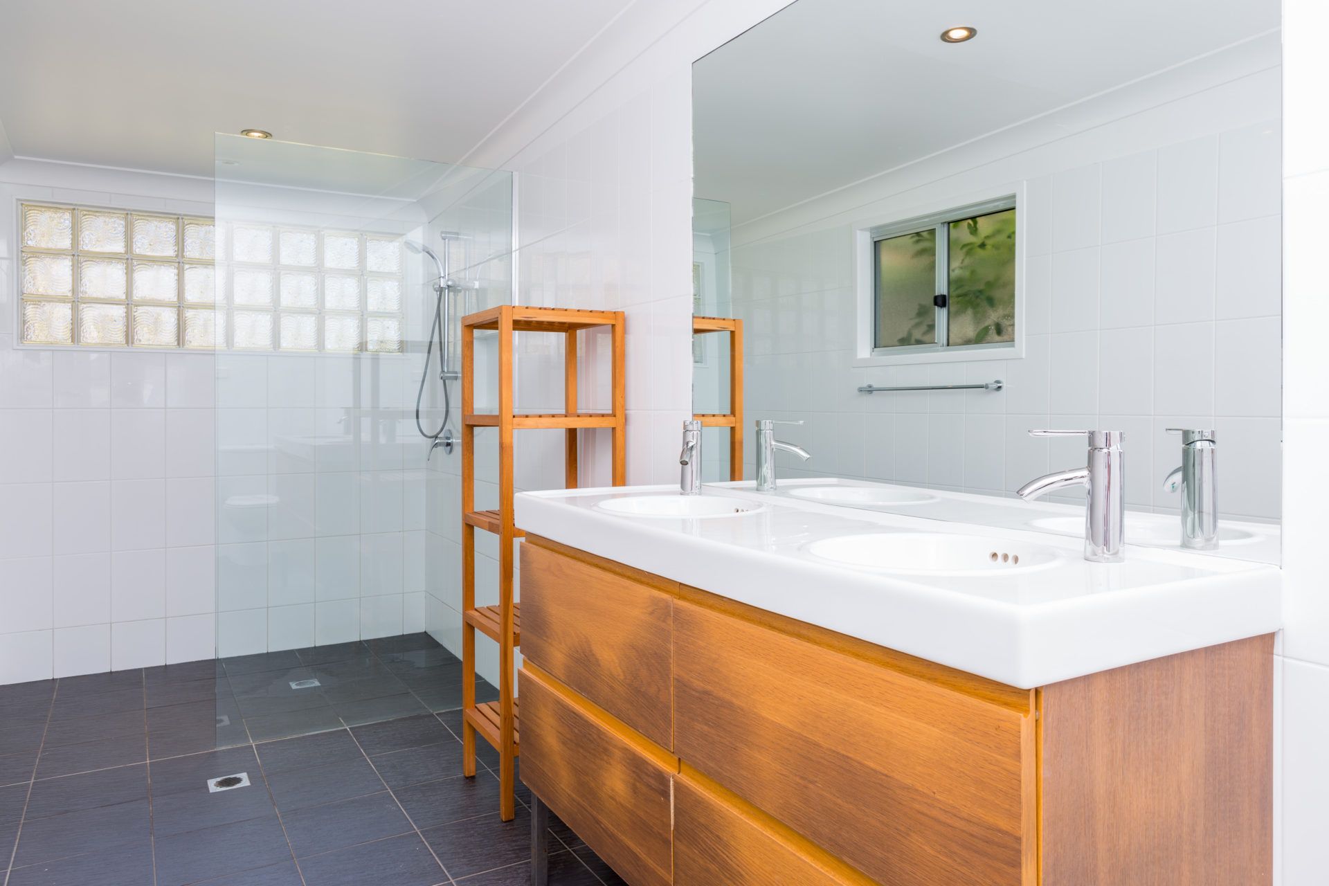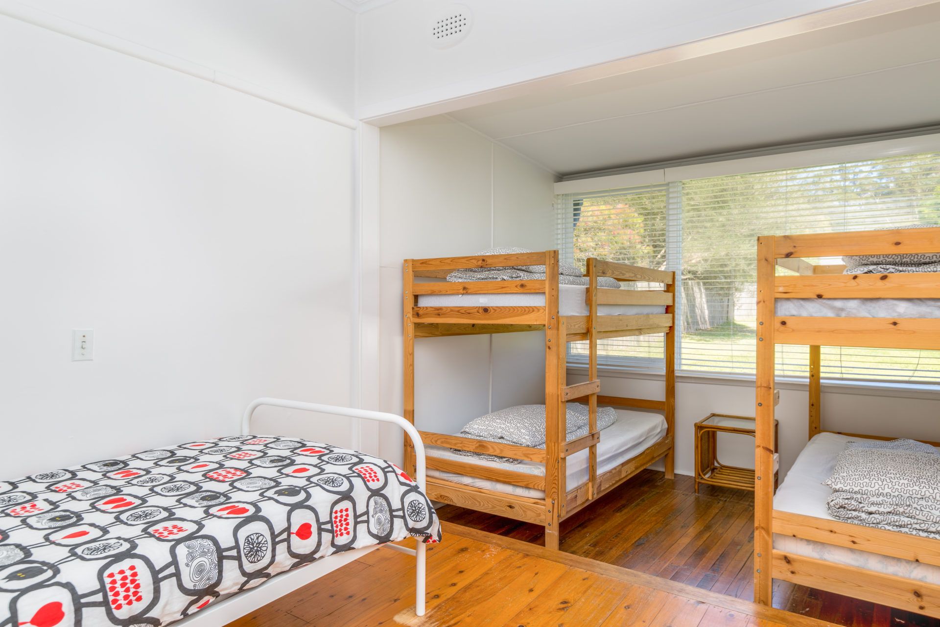 Bimbadgen is a single level house with entry into the kitchen shared dining area. Off this room is also the open plan living space that leads onto the rear deck. There are three large bedrooms that sleep nine in total. Bedroom 1 has a queen size bed. Bedroom 2 has a queen size bed as well as a large modern ensuite. Bedroom 3 is the bunk room which has two bunks and a trundle, great for the kids. There is a second shared bathroom and a small laundry.