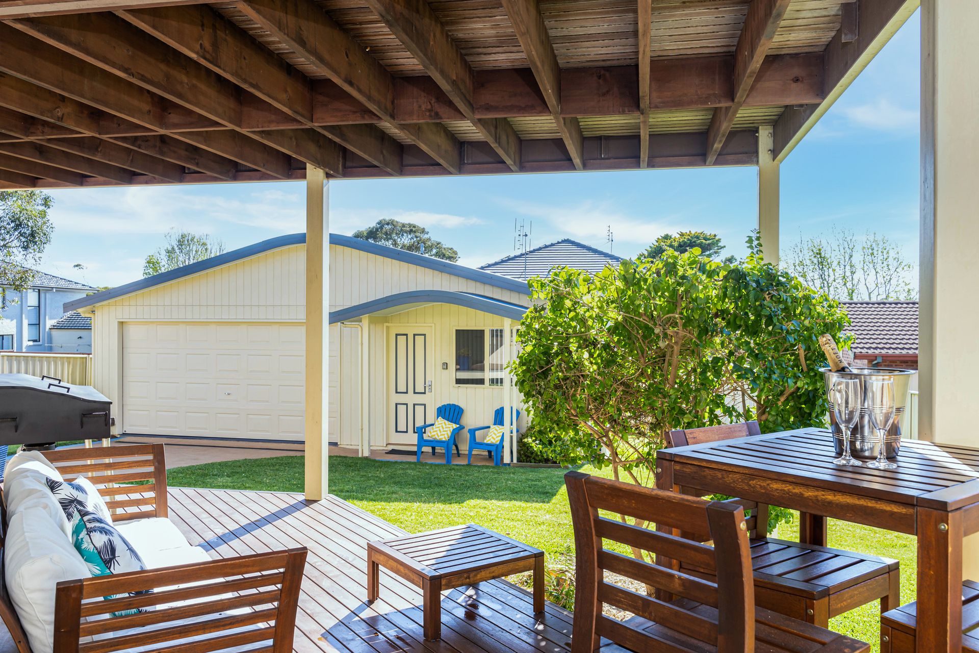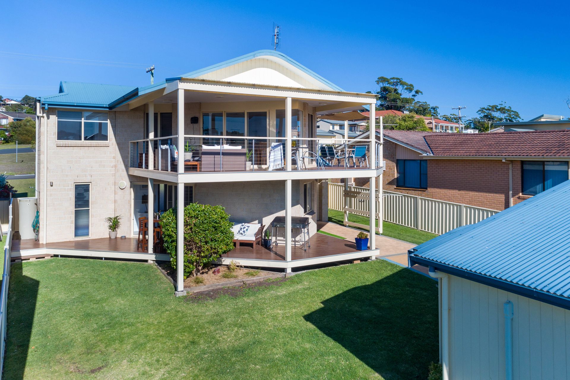 There are many great outdoor options at Blue Horizon Vincentia. Relax on the large upstairs deck, or BBQ downstairs. The large, enclosed yard is great for your children. There is also an outdoor shower where you can rinse off the sand after a day at the beach.