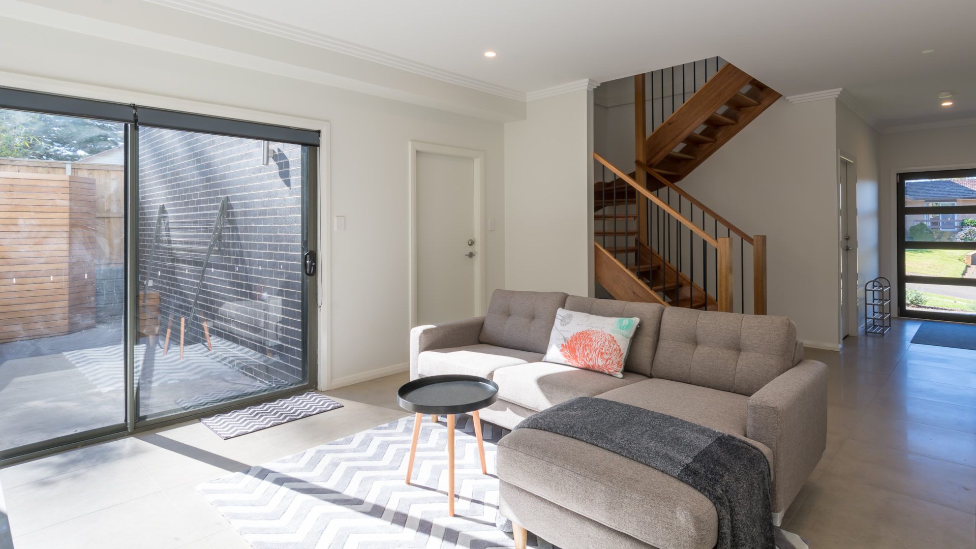 The other two bedrooms are upstairs, as is themain bathroom with toilet, vanity, hobless shower and deep set bath. There is also an open plan living, kitchen and dining area with wooden floor boards throughout, access to a balcony, and a dining table seating six.