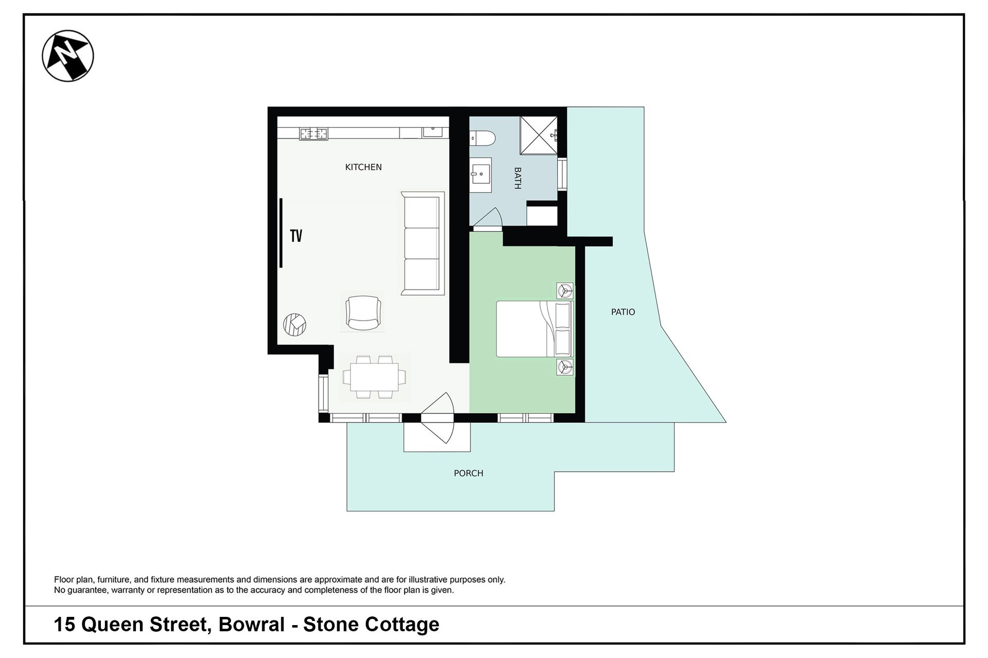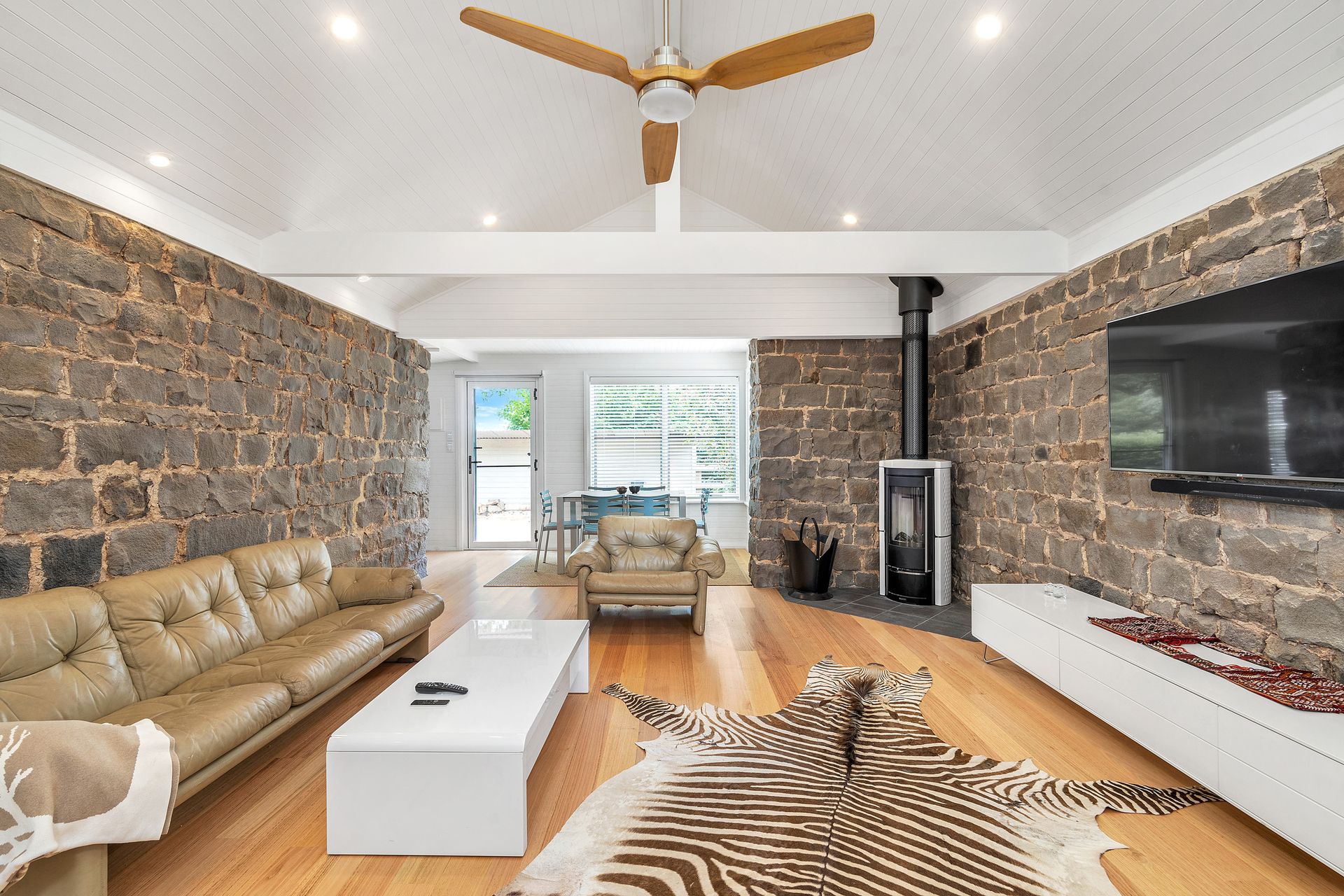 The Stone Cottage is a separate dwelling with lounge room and kitchen, and a separate bedroom with ensuite.