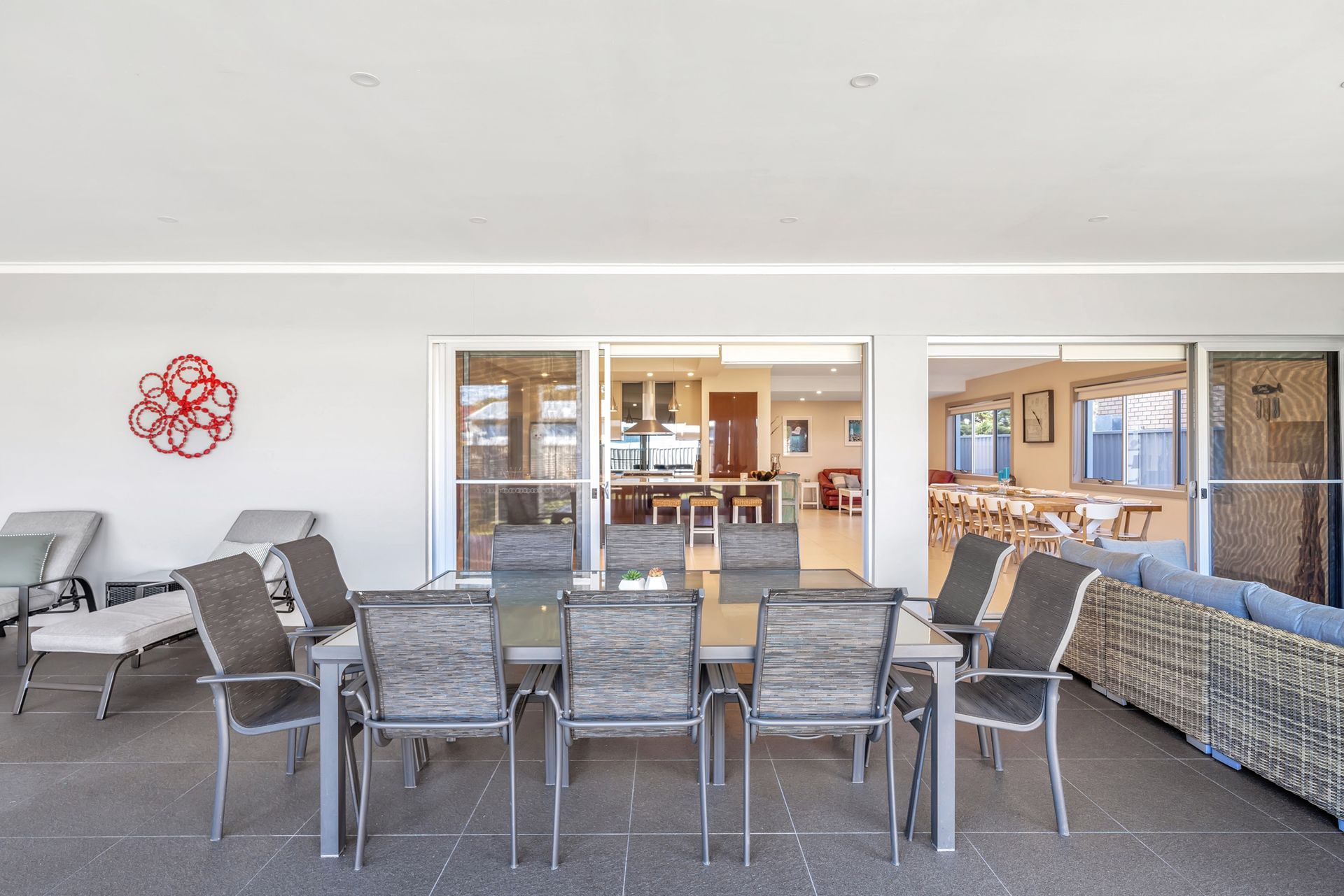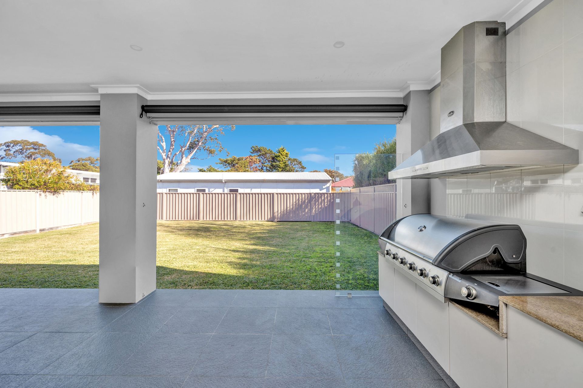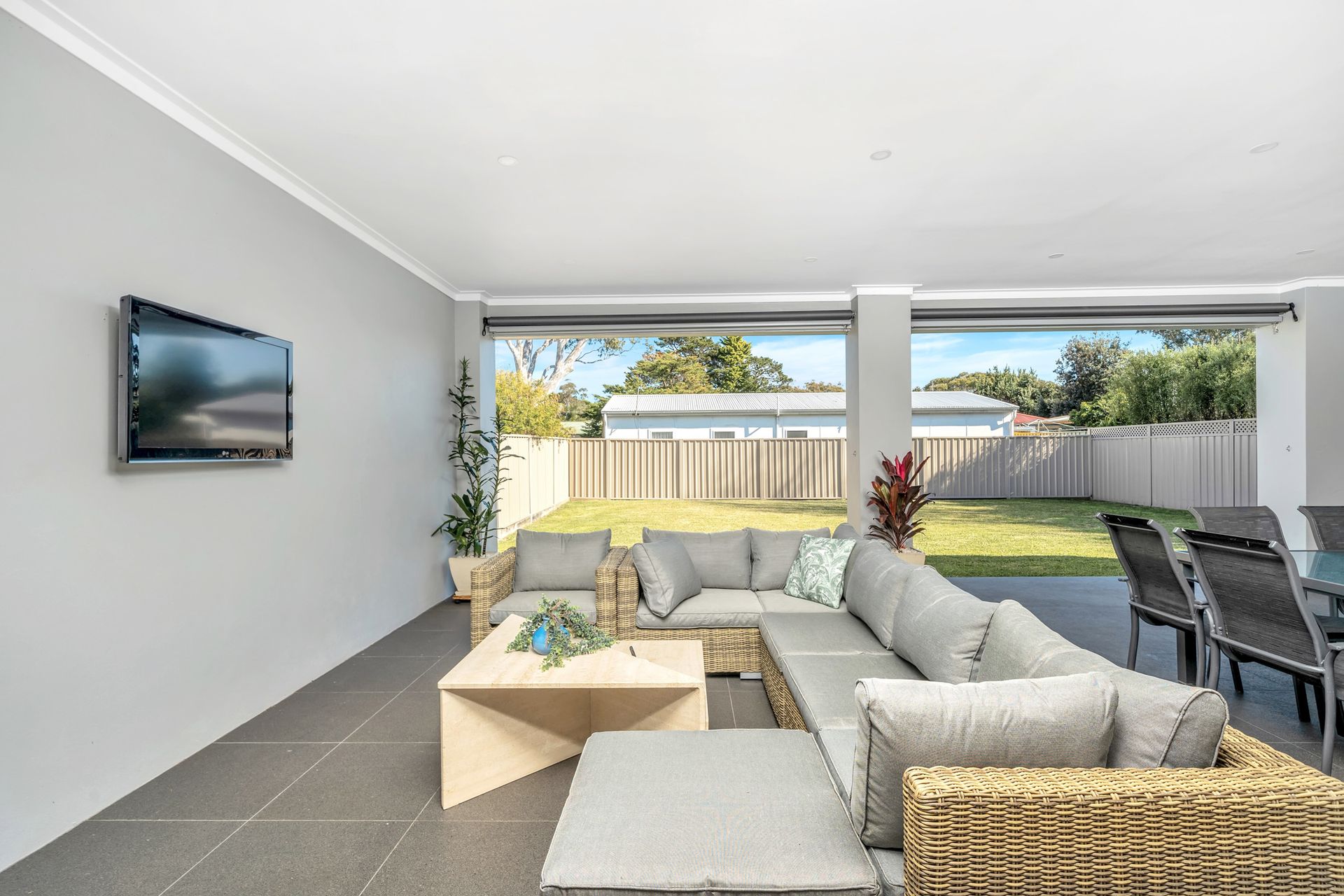 Gather at Vincentia has a front garden / lawn area, a very large back yard with lawn, and a huge covered patio at the rear - with gas BBQ, lounge nook, and an outdoor dining table. The property also has an outdoor shower at the front as you come in the gate.