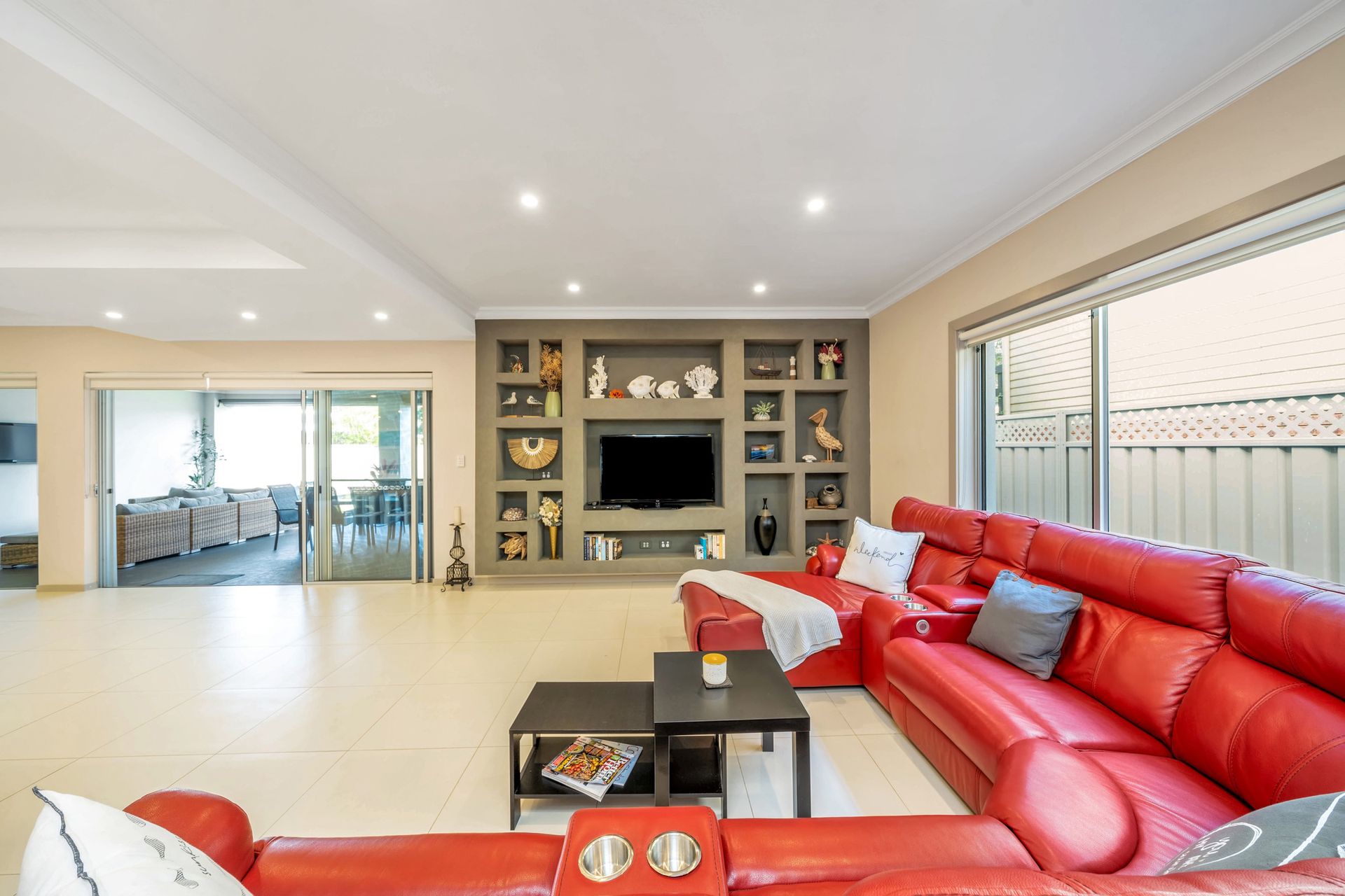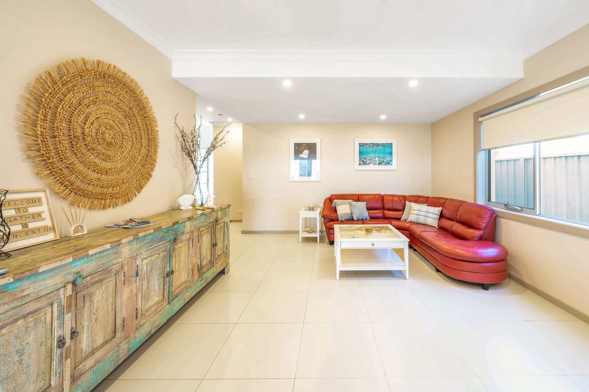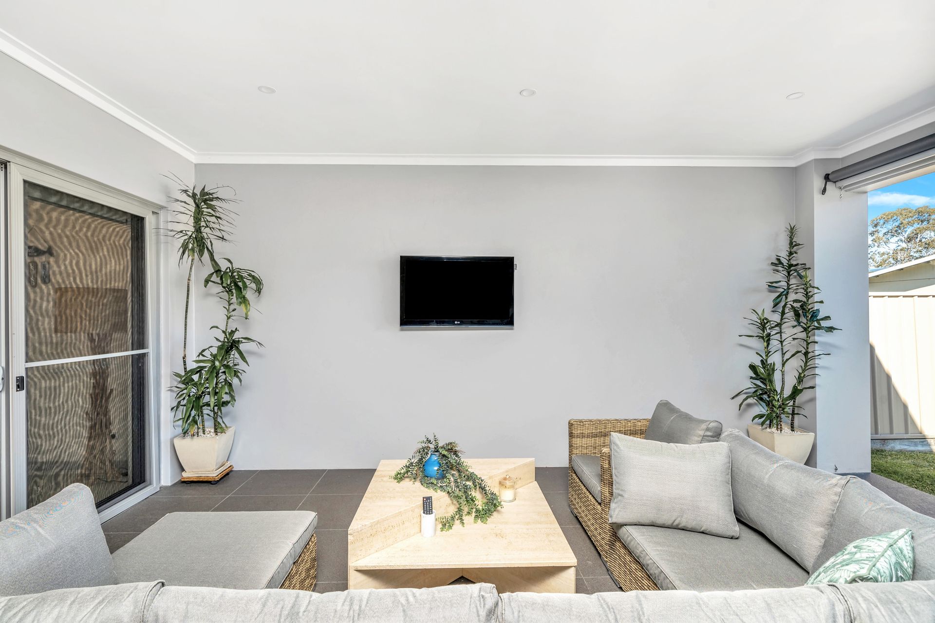 Gather at Vincentia has a front garden / lawn area, a very large back yard with lawn, and a huge covered patio at the rear - with gas BBQ, lounge nook, and an outdoor dining table. The property also has an outdoor shower at the front as you come in the gate.