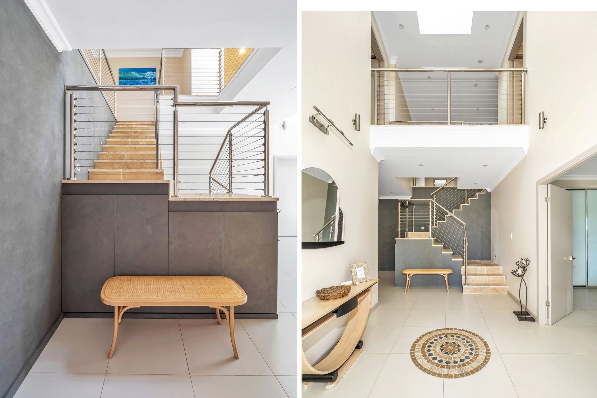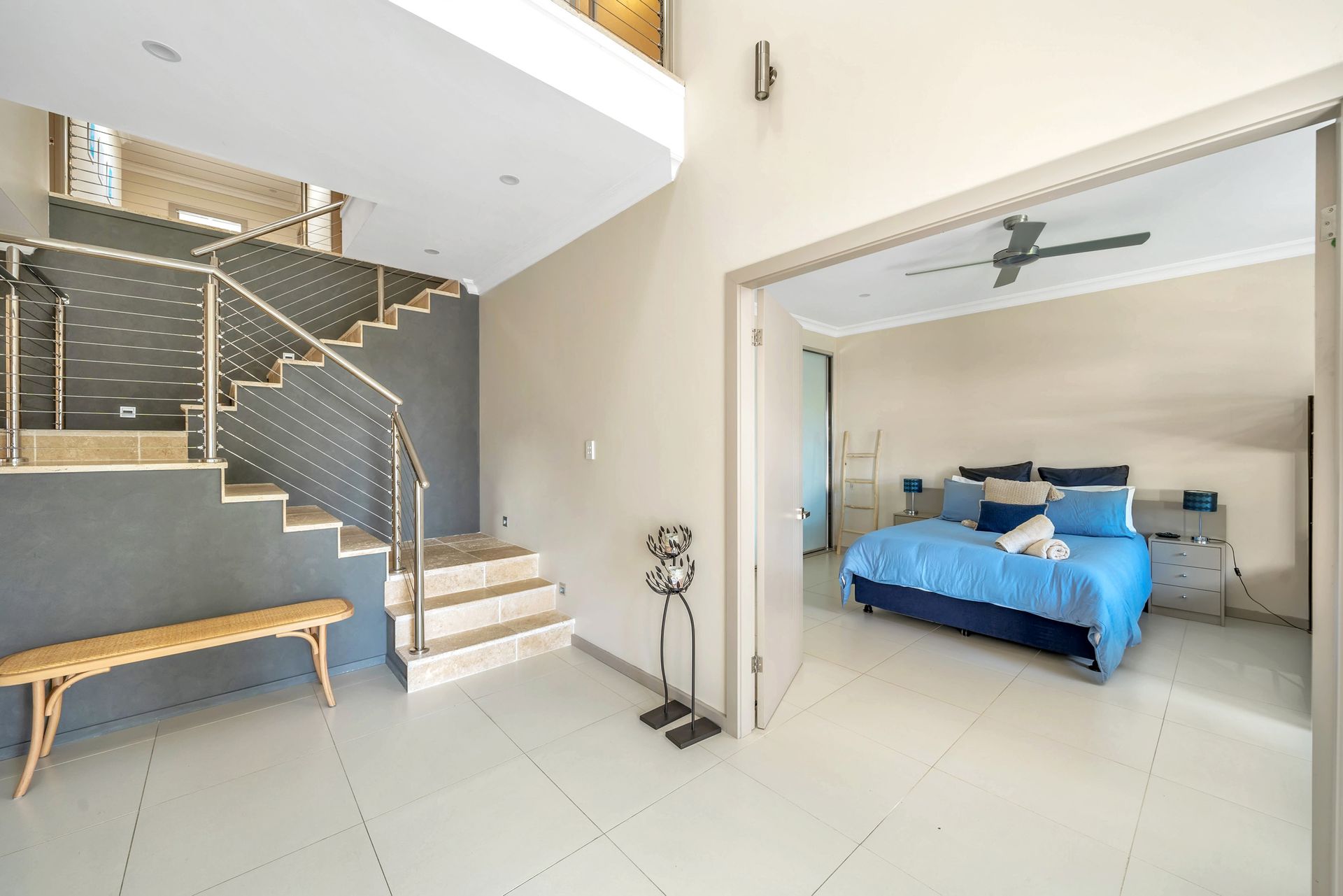 The upstairs level has the remaining 6 bedrooms and 3 bathrooms. Two of the bedrooms face the ocean and have some views of Jervis Bay.