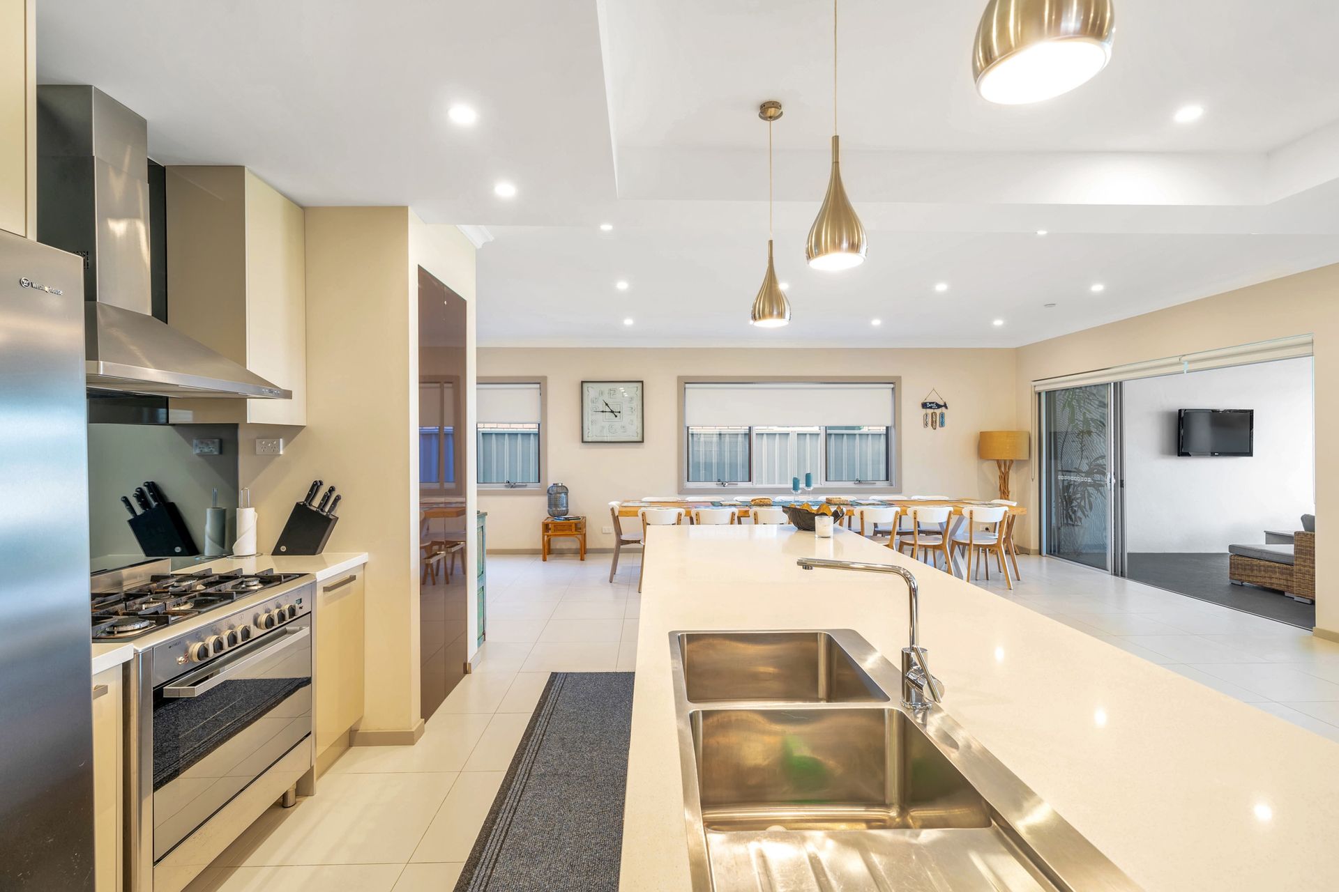 Gather at Vincentia is the perfect option for a large family gathering, or getaway for a respectful group of friends. This stylish and beautifully built home sleeps up to 16 and is an easy walk - as seen in the aerial photos - to Collingwood Beach. The house has 7 large bedrooms and 5 bathrooms, a massive open plan kitchen dining and living area (with two lounge nooks), and a large covered rear deck with a third lounge area, BBQ and outdoor eating! For a large group, you will struggle to find a more spacious, comfortable and well-appointed home in Jervis Bay!