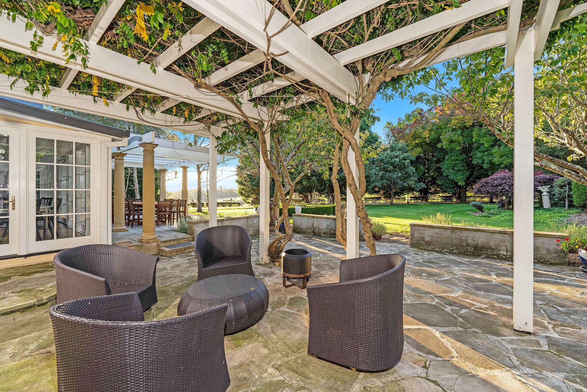 Glen Regan has multiple stone terrace areas which are covered with pergolas and wisteria. The extensive gardens and grounds are magnificent! There is a full sized tennis court and lovely grassy fields and wooded areas where guests can enjoy a country stroll. Enjoy the firepit at night under the stars! There is one BBQ available for use.