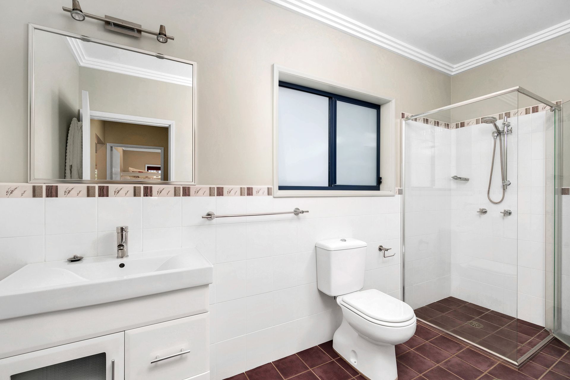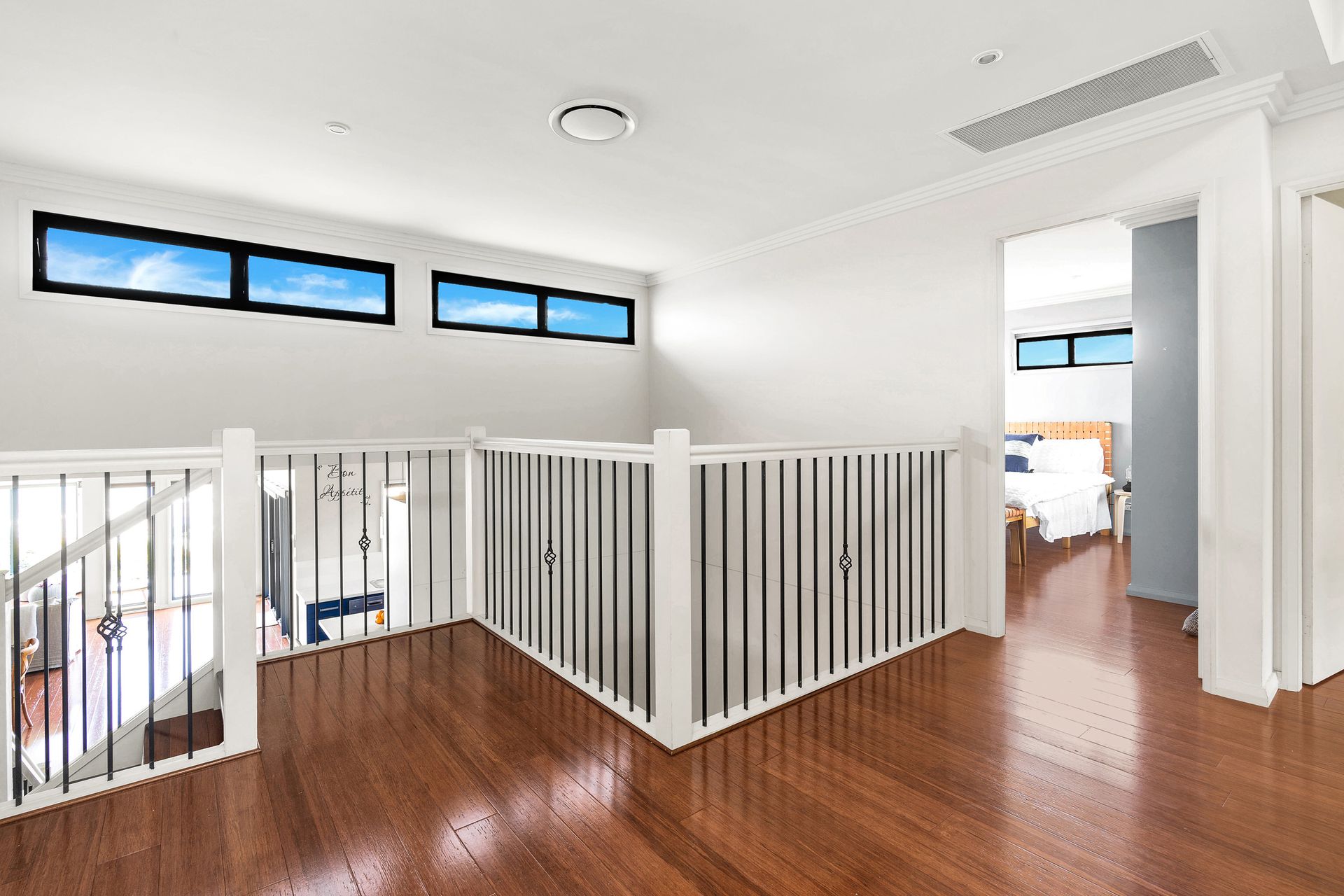 Upstairs / bedroom level - three bedrooms, each with its own balcony! Two are queen bedrooms, one of which has an en-suite. The third bedroom has 2 single beds. Shared bathroom. Separate toilet. This level of the home also has fully ducted air conditioning - for heating and cooling.
