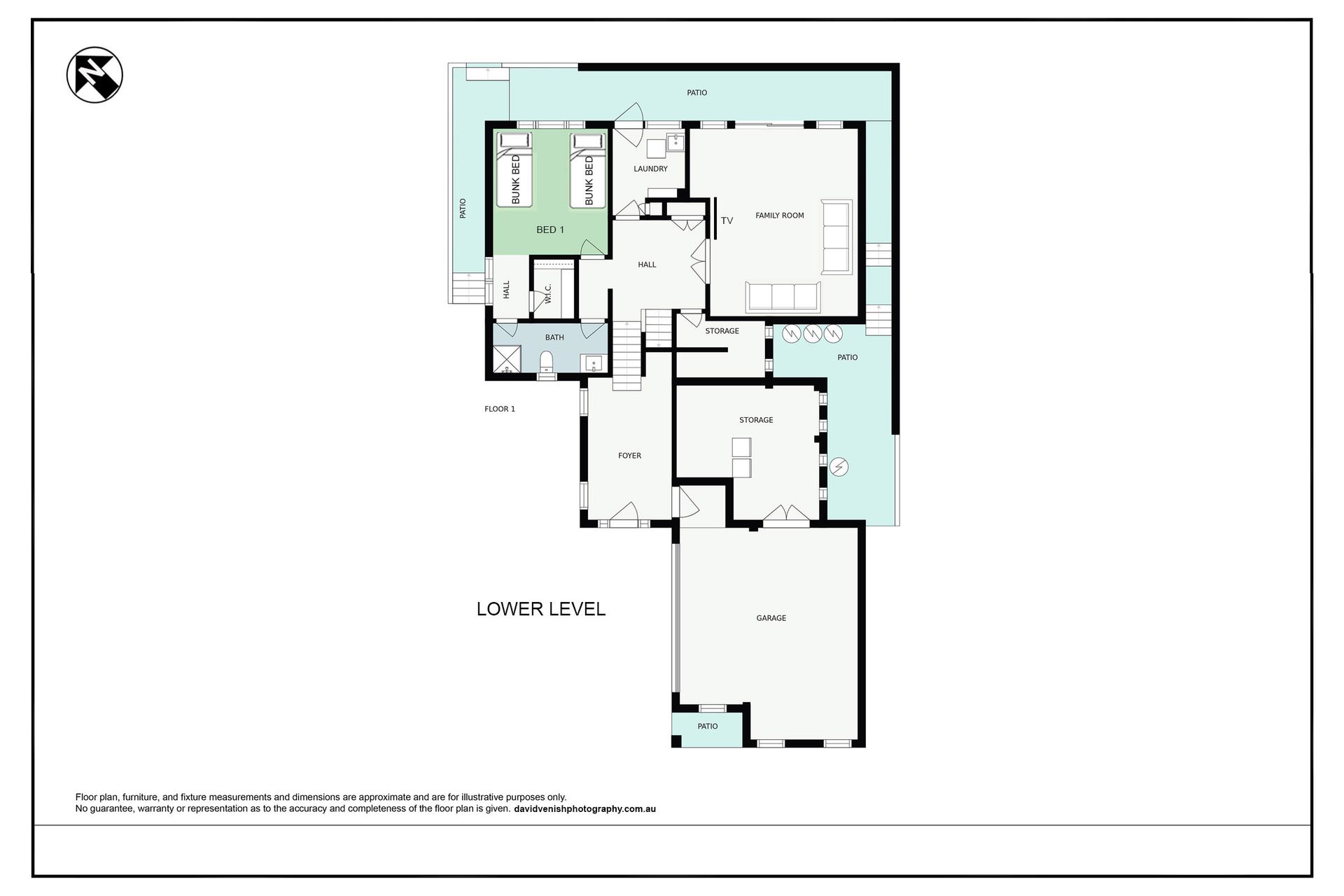 Mezzanine level - bunk bedroom for 4 with two way bathroom. Second living area / rumpus room. Internal laundry with access to rear garden (with a handy doggy door as well).