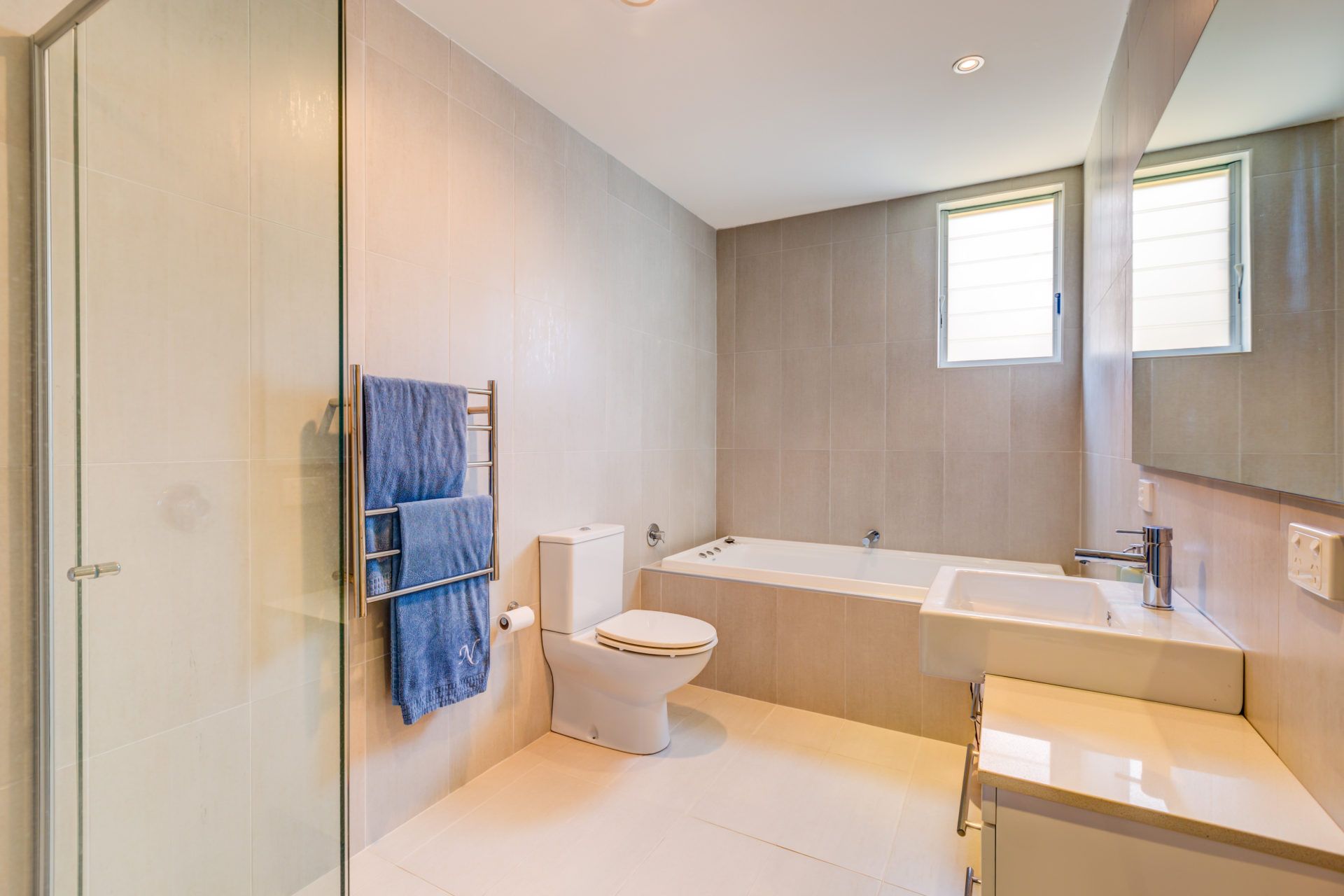 Harlequin Beach House has reverse cycle air conditioning in the open plan living area for year round comfort, along with ceiling fans and electric heaters in the bedrooms. The bathrooms also have under floor heating and heated towel rails. In summer, a lovely northeasterly breeze typically blows through the house from late morning onwards.