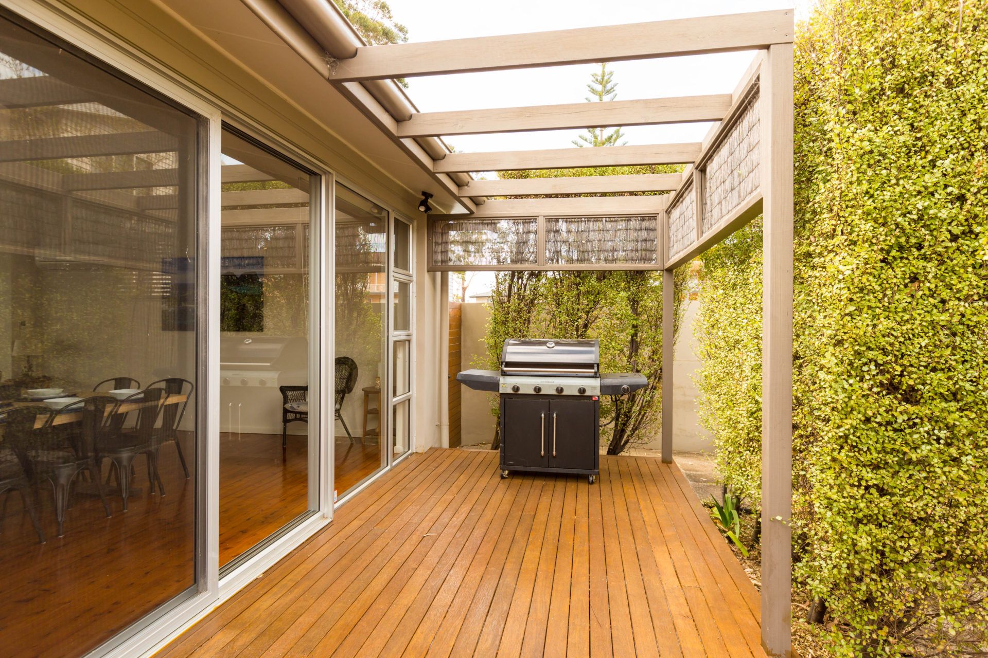 There are so many great outdoor options at Harlequin Beach House, including a good sized front lawn, and the glass sliding doors lead straight to the internal courtyard that provides adequate shelter from any north-easterly wind, or just a sunny outdoor space in cooler months. You can not beat the views from large full width verandah and an outdoor shower to wash off the beach sand.