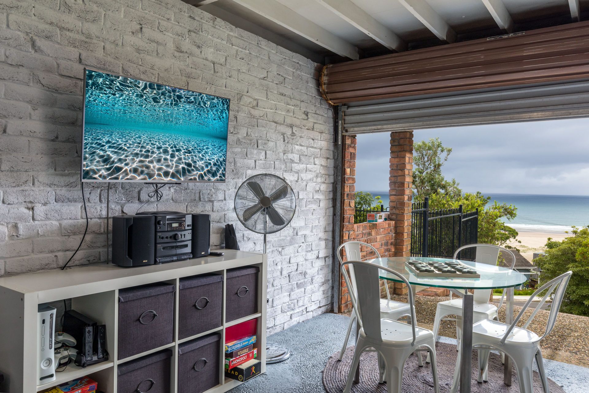 Jewel of Gerroa is a two level home. Upstairs has 3 bedrooms, a bathroom with shower and bath and a large living area that flows onto a wide balcony. The kitchen is also on this level with views to die for. It is is equipped with a coffee machine that is compatible with Aldi Expressi pods. The lower level has a large fourth bedroom, additional bathroom with internal laundry, a rumpus room for kids, kitchenette and a secure back courtyard.