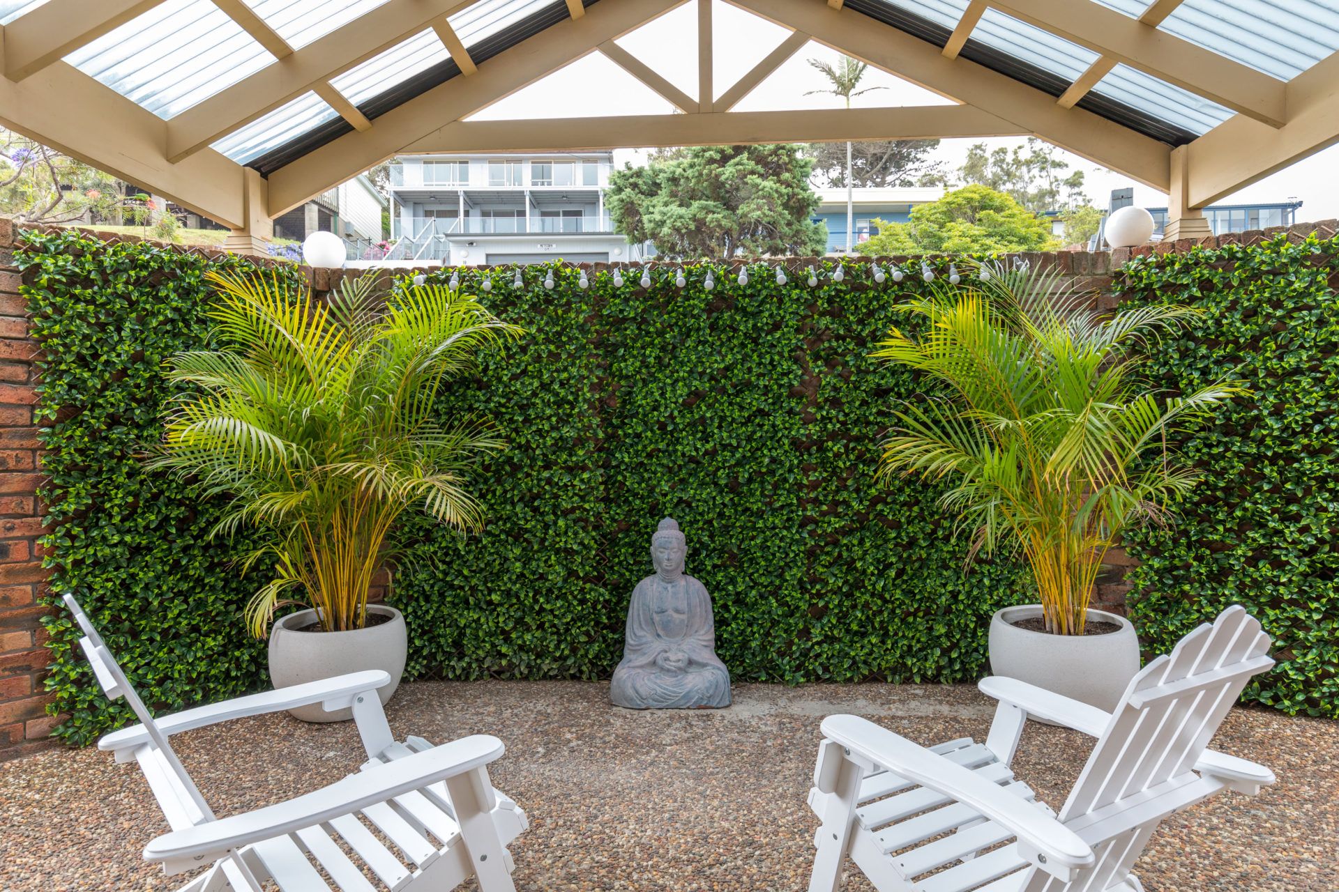 Jewel of Gerroa has a wide balcony, secure back courtyard, some lawn areas and dual driveways - one off Headland Drive and one off Riverleigh Avenue.