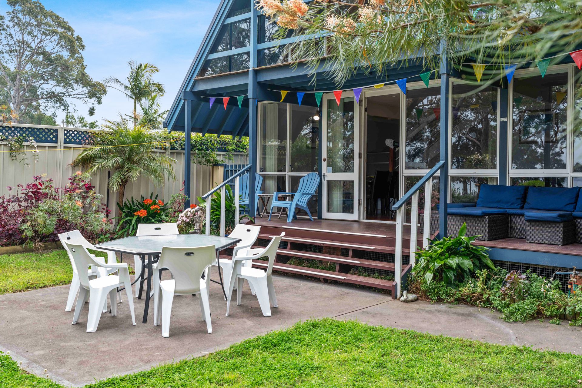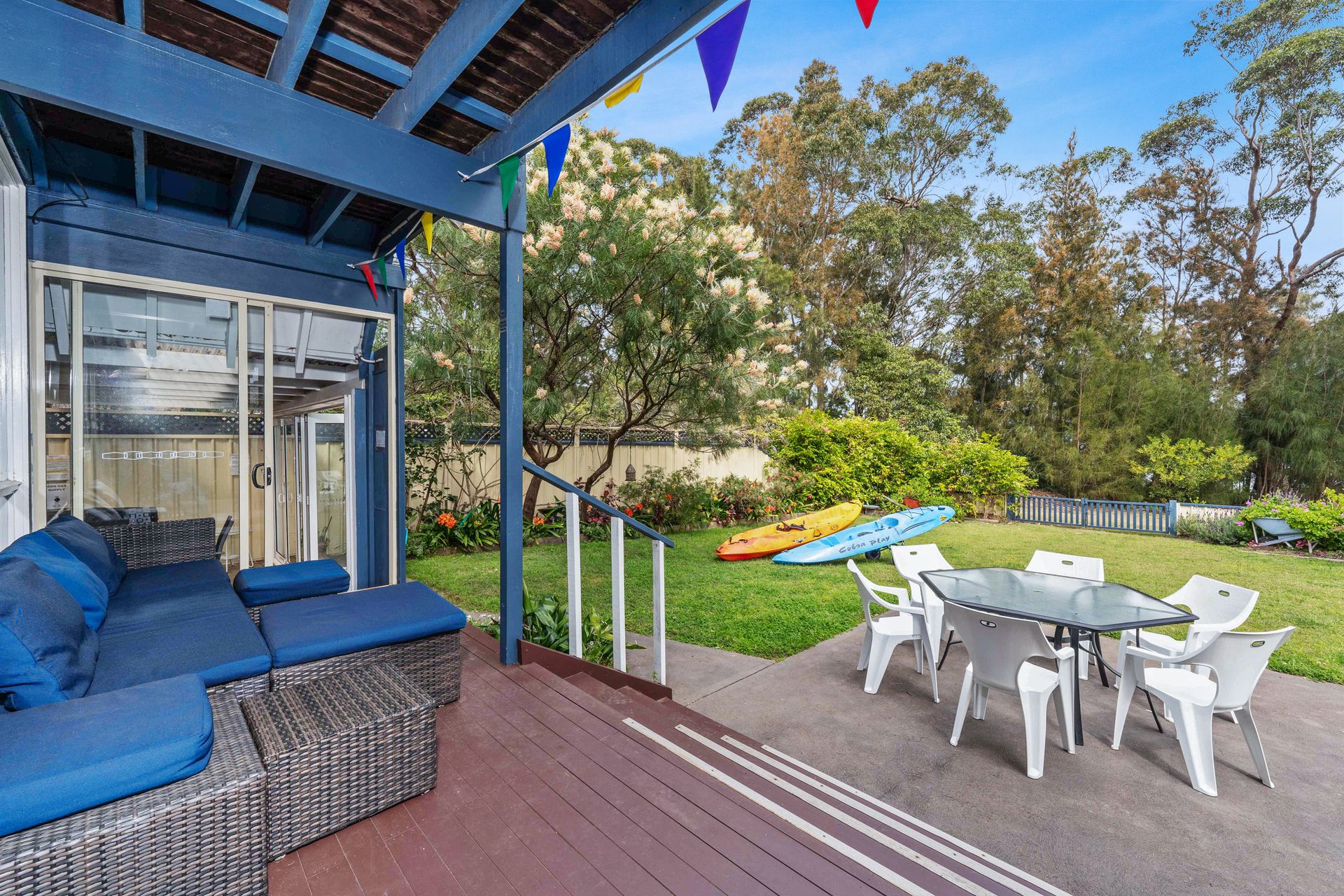 Lakeside Sorrento is right on the St Georges Basin lake. A pet-secure, gated, fenced property with lovely gardens.