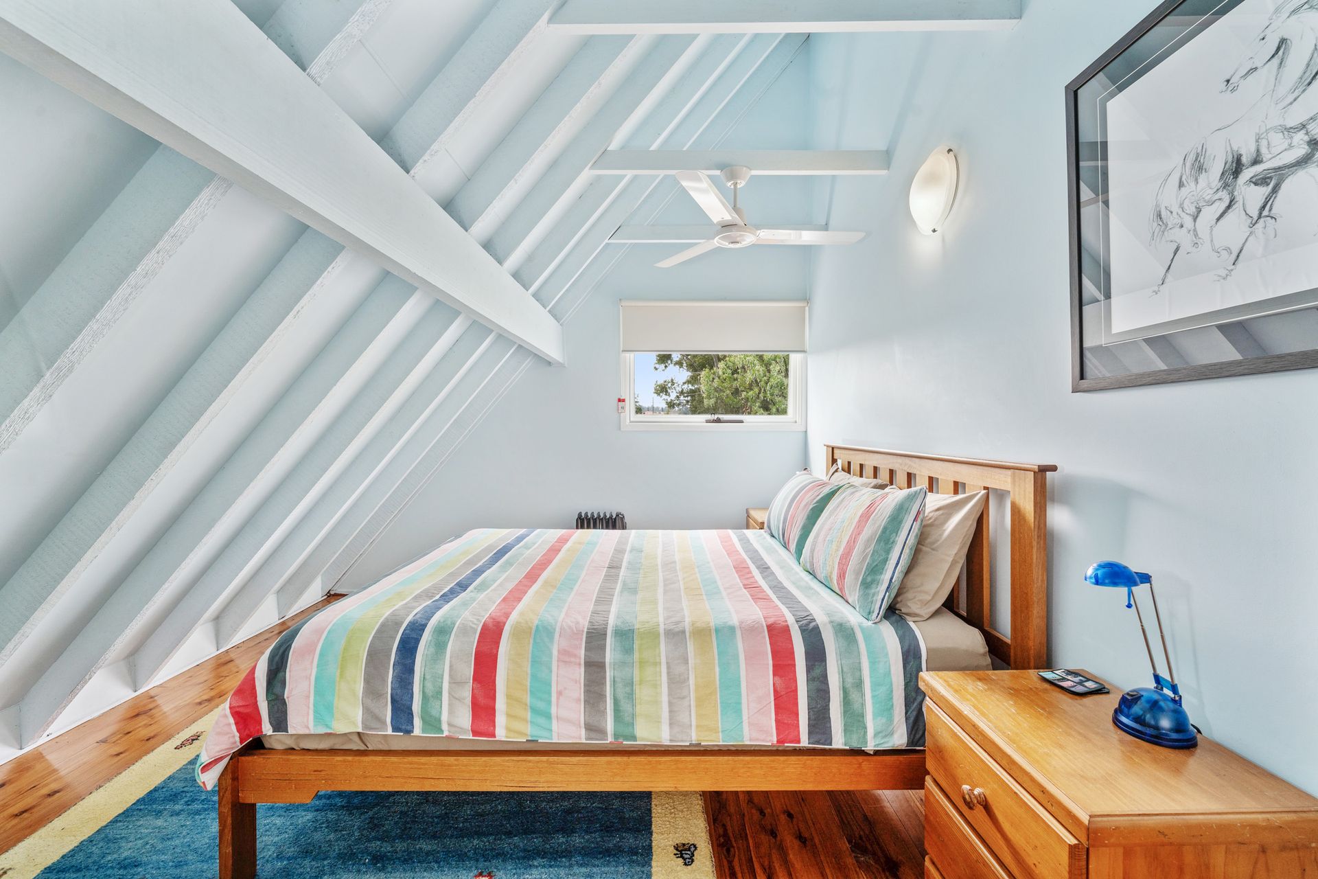 Doonas, blankets, electric blankets and heaters are provided for winter. There is a reverse cycle air conditioner in the lounge and living room. Effective gas heater in the lounge room heats the Cottage. Ceiling fans in all three top floor bedrooms. The downstairs living room has a portable fan for summer. No air-conditioning.