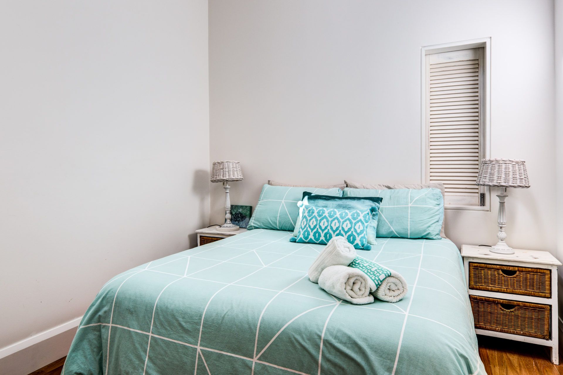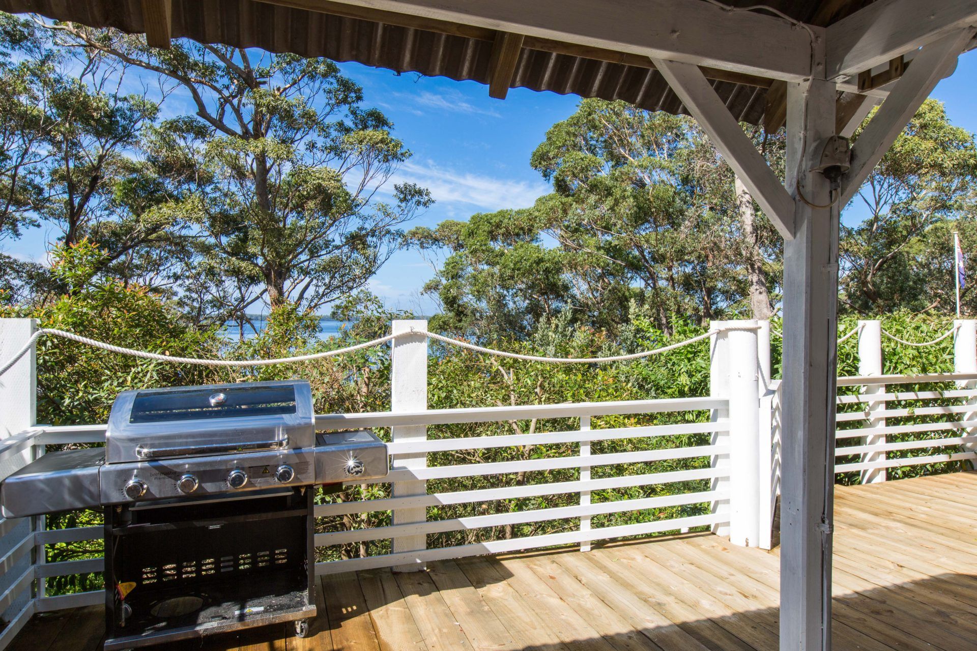 Majestic has a very large private deck and outdoor entertaining area - facing the water and with plenty of outdoor seating plus a gas BBQ. There is also a second large deck upstairs, with a lounge area.It also has its own set of stairs leading down to the waterfront area, which is a short walk from Palm Beach. You can relax and enjoy the deck, or go for walks along the waterfront! Majestic also has an outdoor shower for when you come back up from the beach.