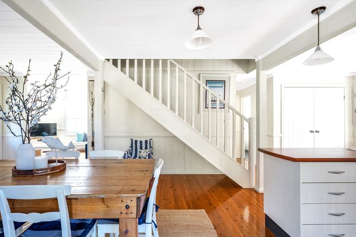 This weatherboard cottage is charming with modern features and plenty of light. It has an open plan dining and kitchen with plenty of room to entertain. The wrap around verandah is perfect for sitting back with a book, watching the bird life and enjoying the day. Its proximity to the beach is unbeatable.