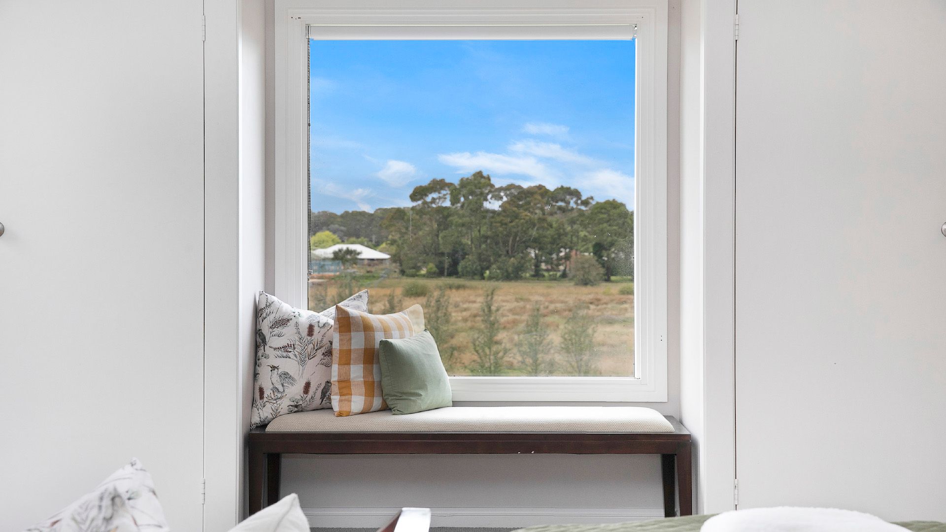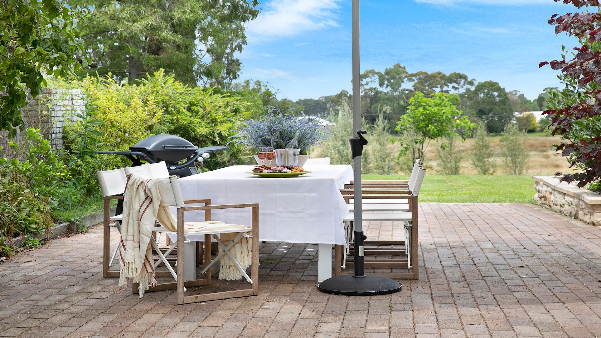 Merrigang Cottage has two fantastic outdoor entertaining areas. Enjoy dining outside, under the umbrella on the patio, or relax on the outdoor lounges. The spacious garden overlooks a field and makes you feel like you are a million miles away from town! There is a great, level lawn area that is perfect for kids to play on.