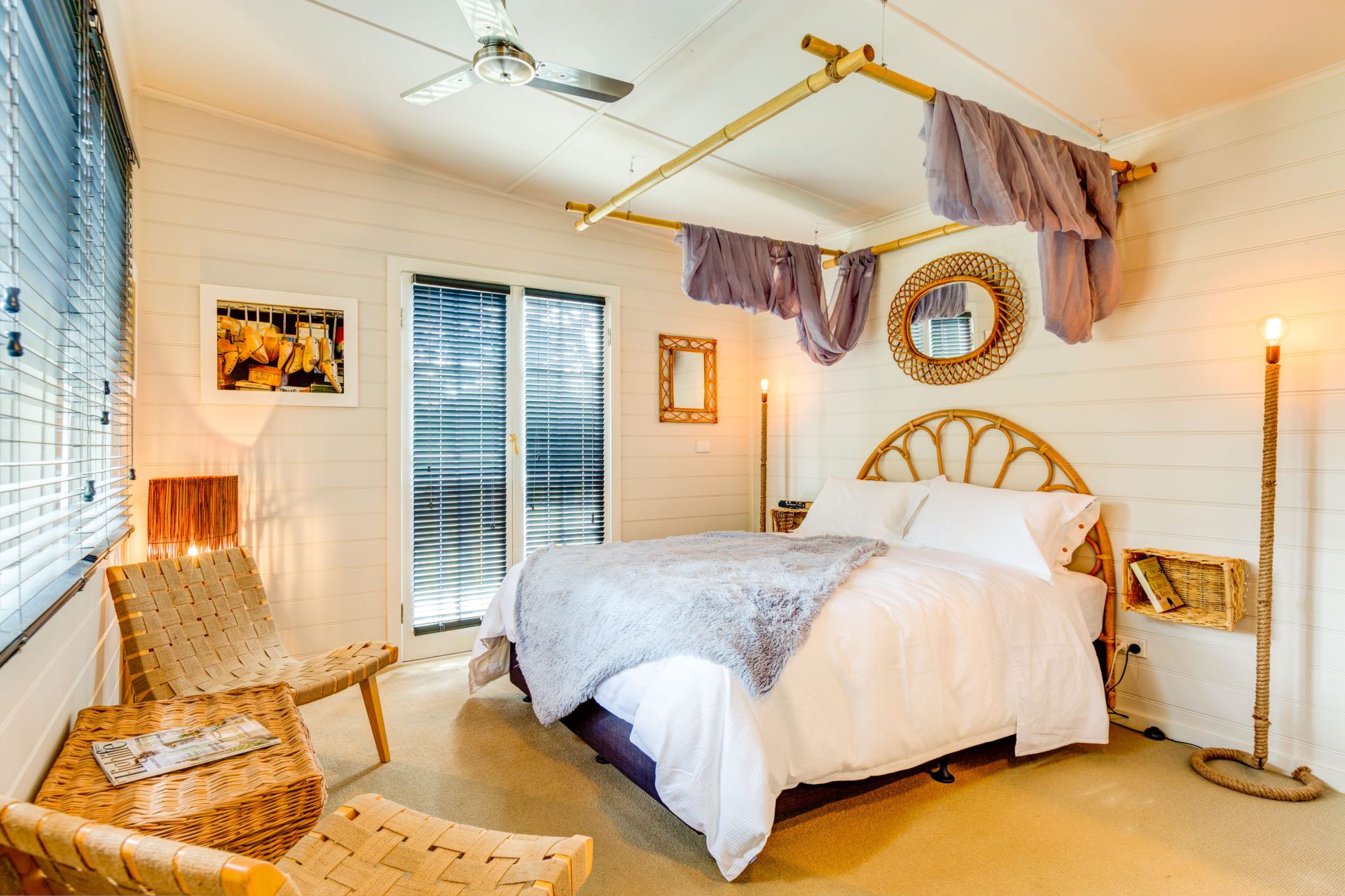 Located at the back of the property nestled among the gum trees, this studio cottage is romantic and secluded. It has a queen bed, en-suite and a kitchenette, as well as its own verandah and electric BBQ.