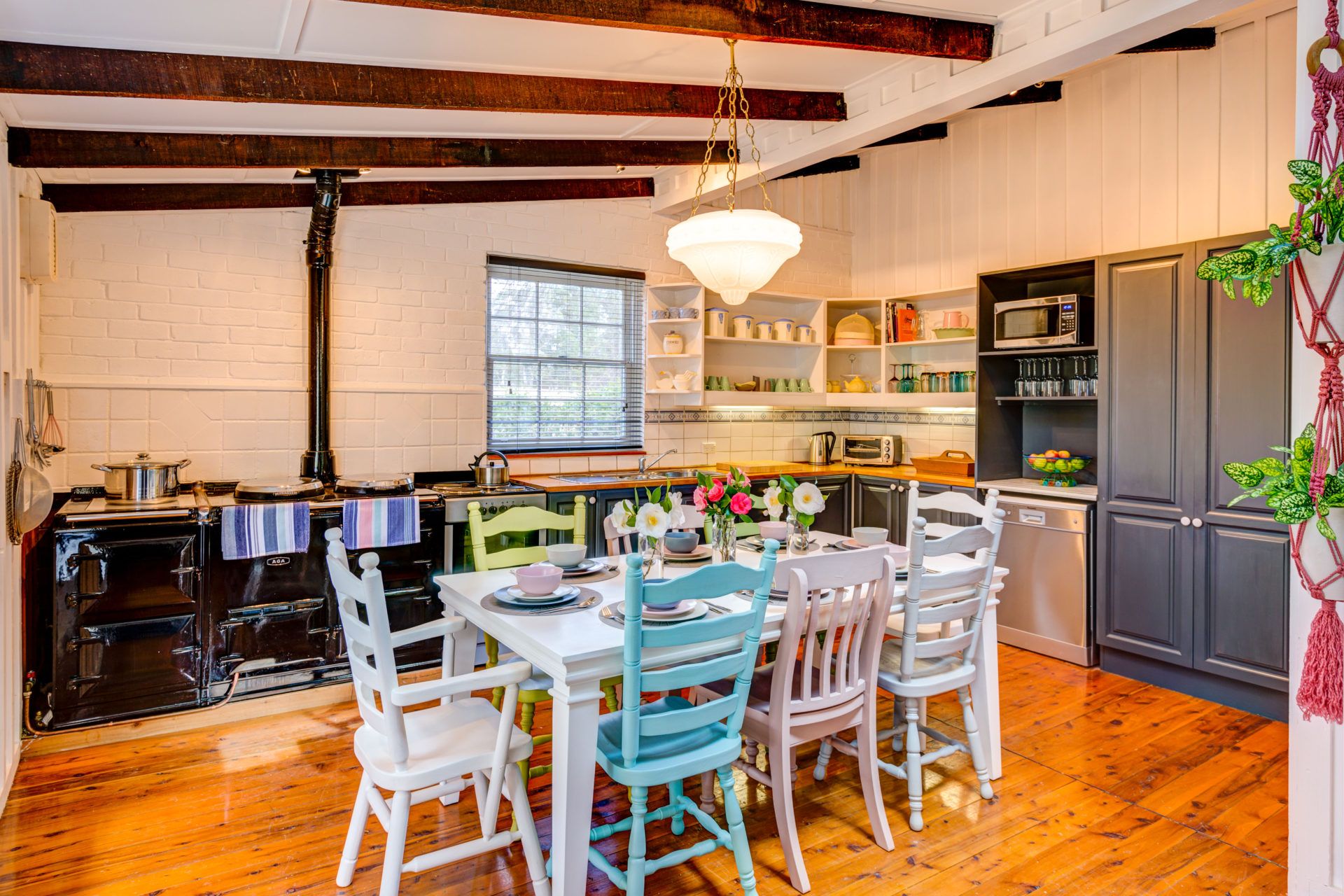 This is the main house and features two queen bedrooms both with en-suites and spacious, light-filled walk-in robes. There's also a large and well-appointed eat-in country kitchen and a separate laundry. Please note that the AGA stove in the kitchen is not functional, there is an electric oven to use instead. The living room has a cozy slow combustion fireplace, flat screen TV, DVD player and a selection of DVDs and books for you to enjoy.