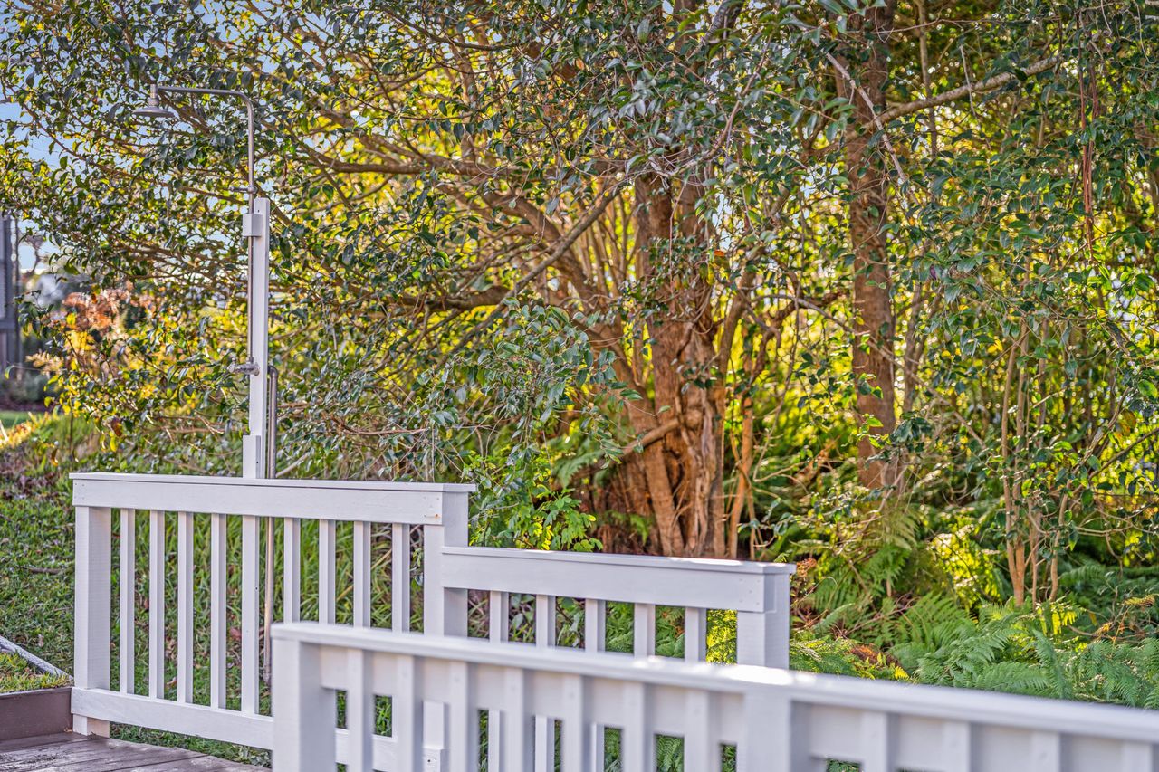 Moby's at Hyams has an outdoor shower for when you come back from the beach, a front lawn area, a front verandah and a good sized rear deck that overlooks a creek, under a canopy of large, mature trees.