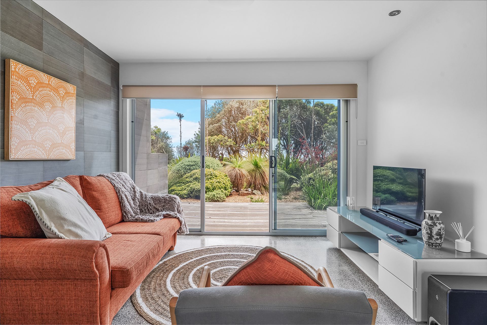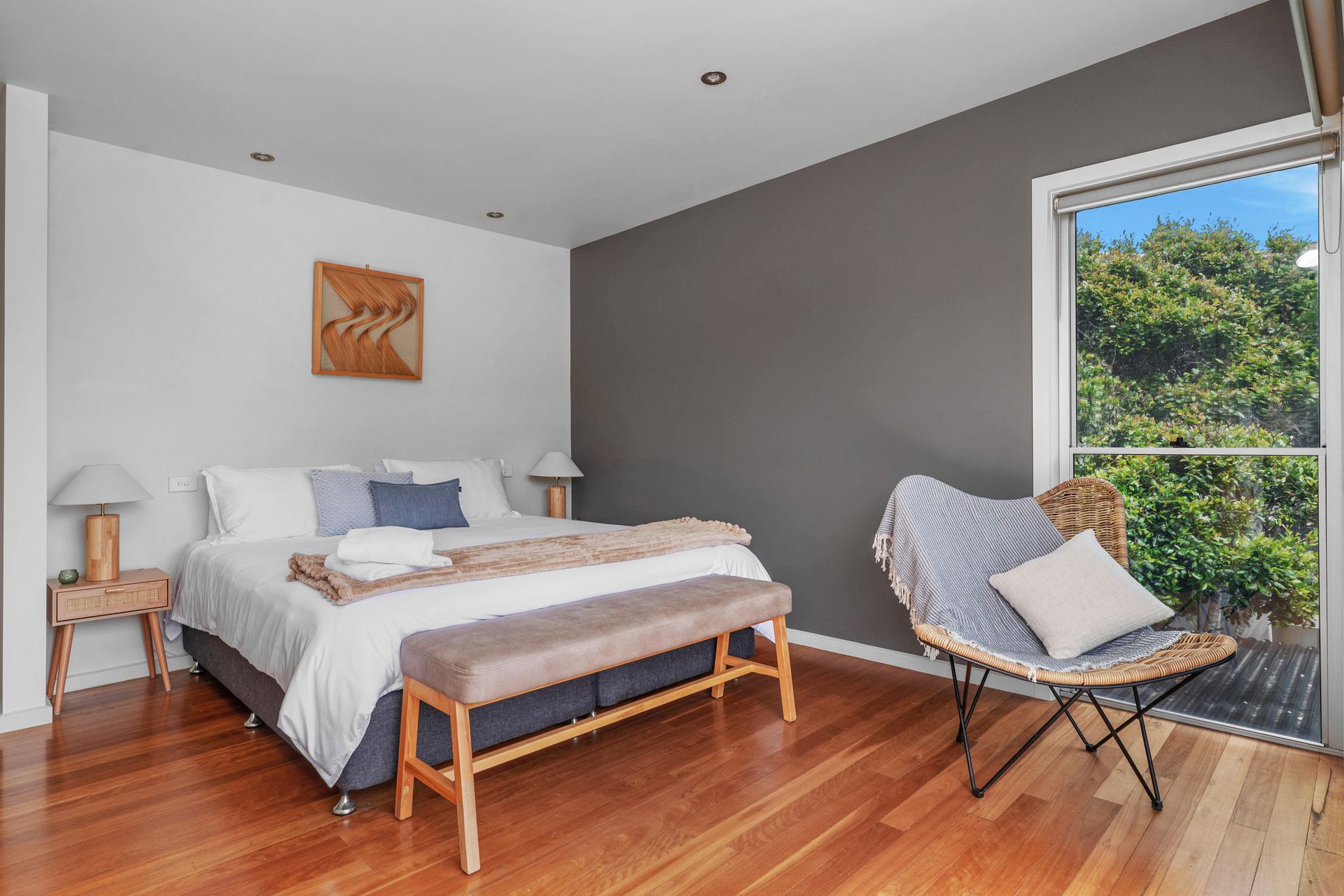 Morze Beachfront was made for outdoor living! Upstairs the balcony is the perfect place to sit back and listen to the sound of the waves. Downstairs there is a large, covered deck with outdoor dining and a BBQ. The gardens are a wonderful selection of native and tropical plants, and there is a lawn area that is perfect for kids to burn off energy.