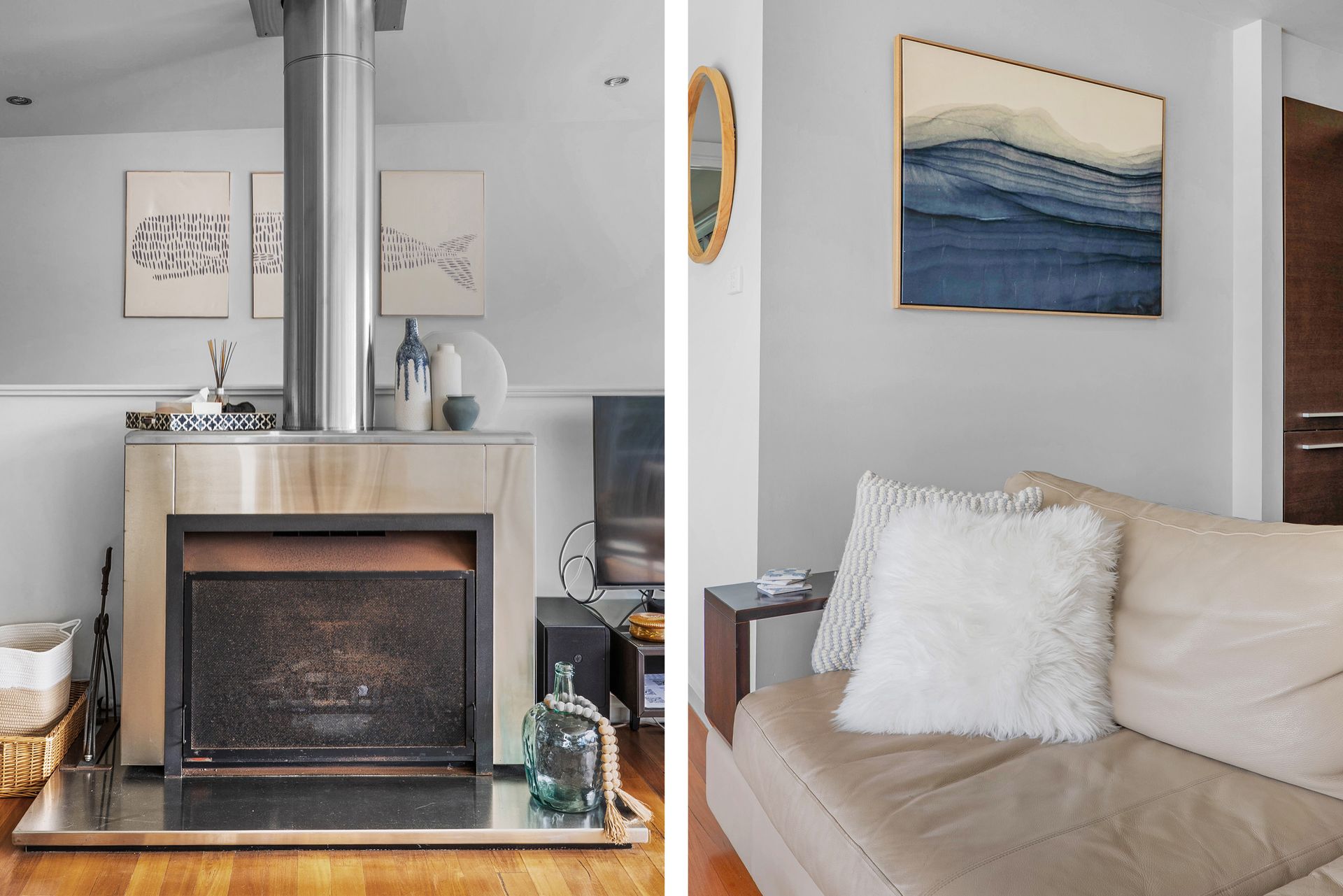 Morze Beachfront is a two story property. The ground floor has two bedrooms, a shared bathroom, family room and a kitchenette with a sink and microwave. Upstairs there is a large dine-in kitchen, kitted out with European appliances, and a living room with a wood burning fireplace and amazing water views! There are two bedrooms, the master with an ensuite and a bedroom adjacent to the shared bathroom. All of the upstairs spaces open onto the beautiful balcony.
