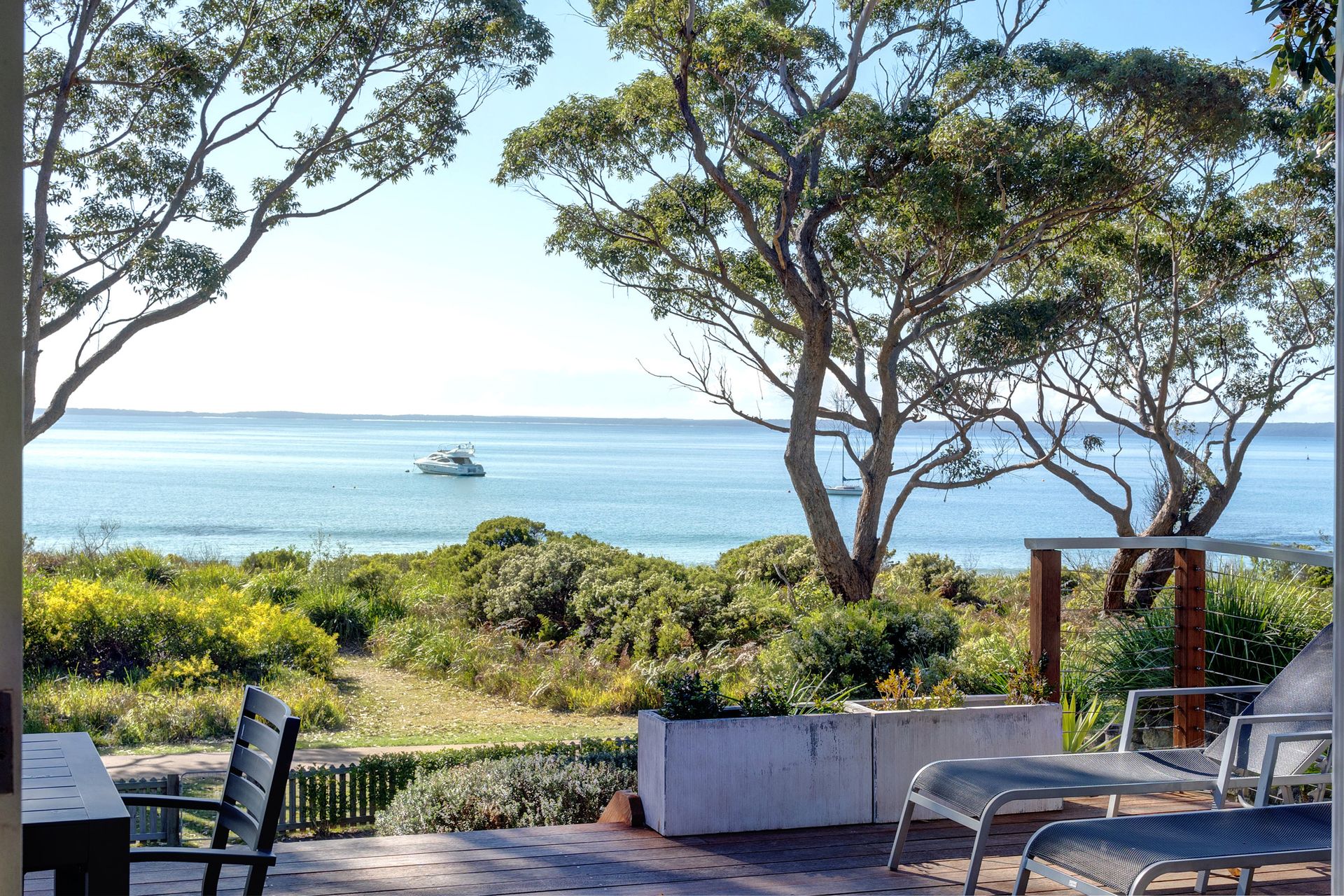 On The Beach is a stylish, comfortable, and beautifully renovated beach house with fantastic views of Jervis Bay from a large front deck. The main house sleeps six and a spacious, self contained annexe also sleeps 6.