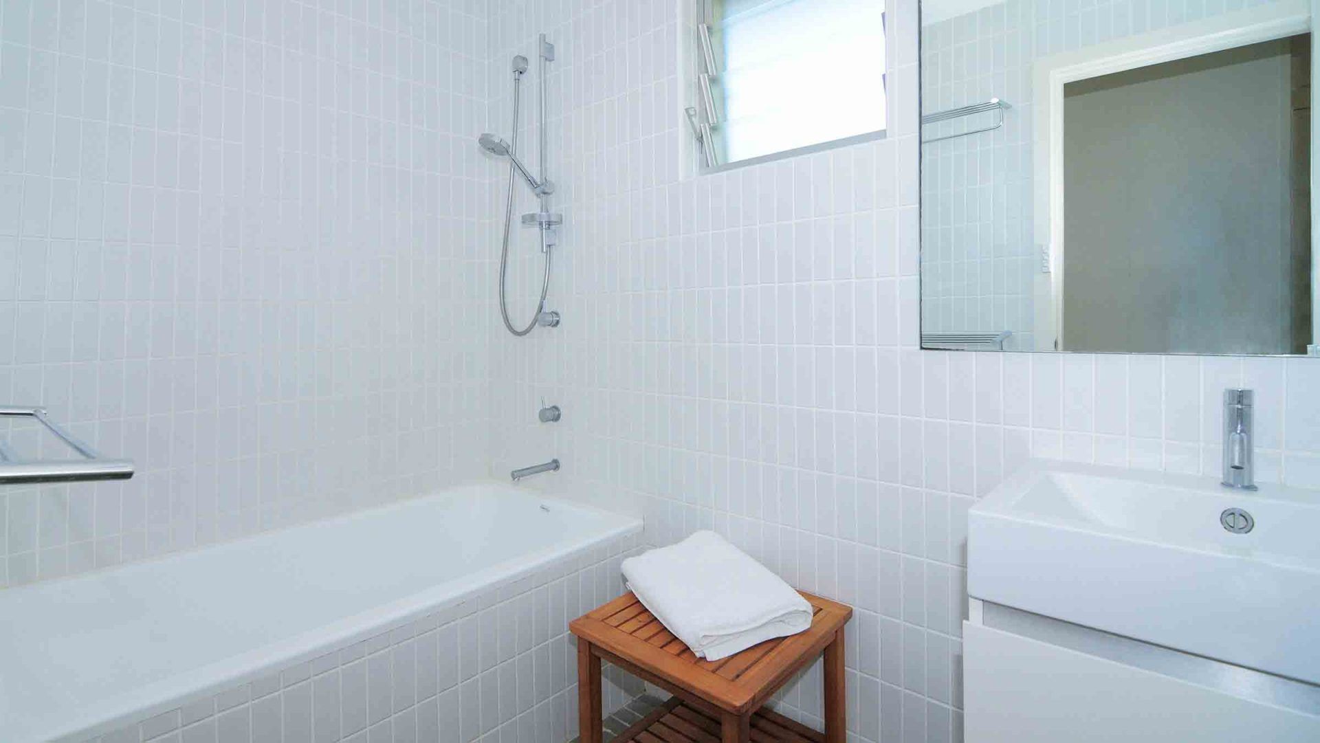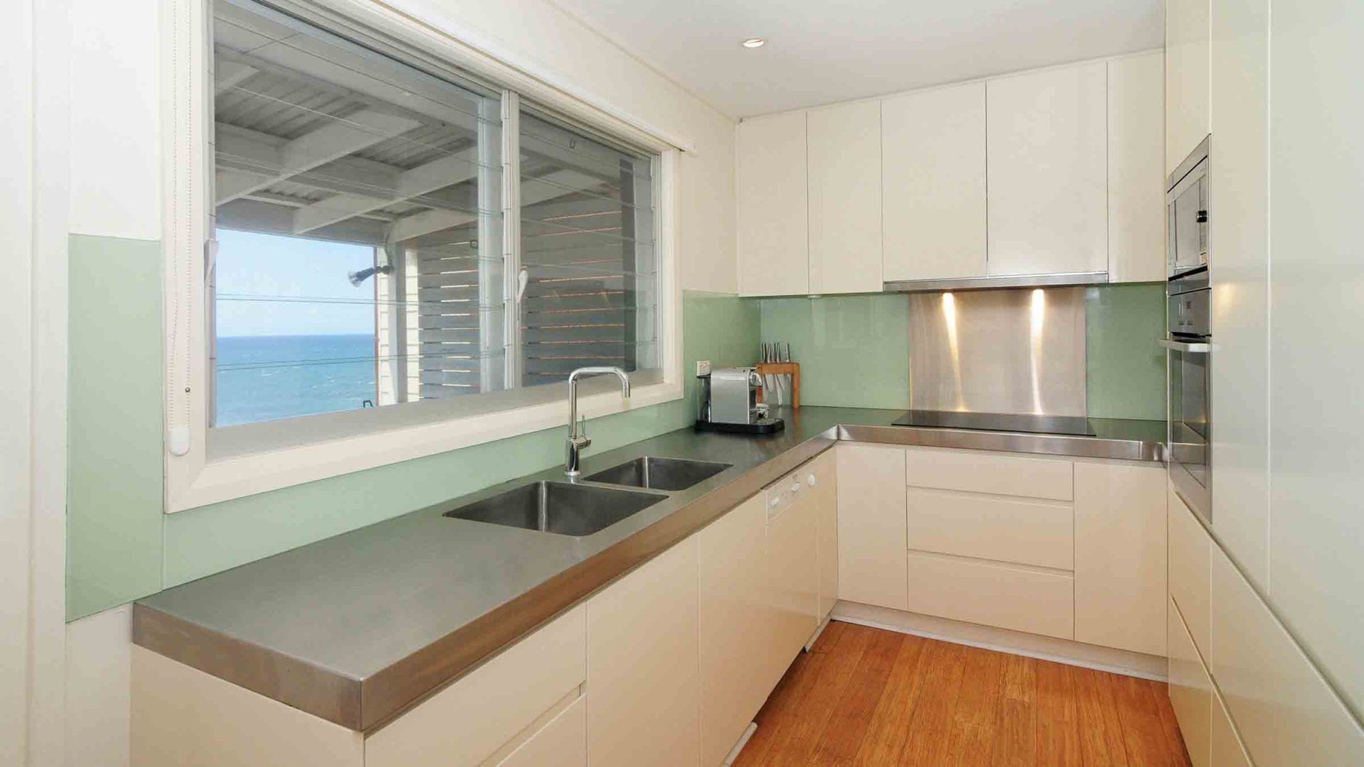 Bedroom One has a king bed, 40"Smart TV and views over Shelley Beach. Bedroom Two has a king bed. Bedroom Three has two single beds. There is one bathroom in the house with shower over bath, vanity and separate toilet and another shower and toilet located down the external stairs in the laundry. The kitchen, dining and living areas are all open plan, there is a dining recess with long timber table and chairs,. The stylish living area has leather lounge suites and a 40"Smart TV with Netflix. The kitchen is very well-equipped with a pod coffee machine compatible with Nespresso Original line pods.