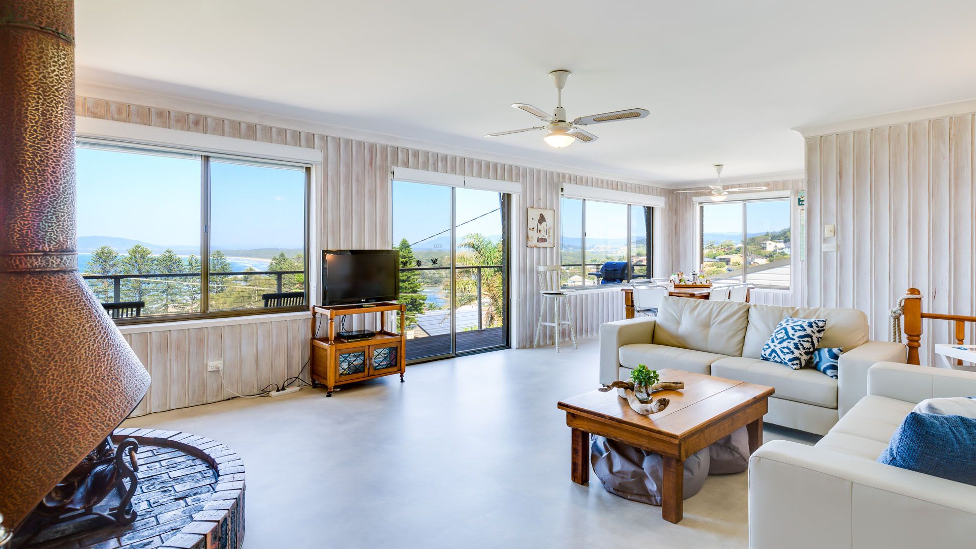Watch sea eagles as you sit perched on this hilltop home with views to the ocean!