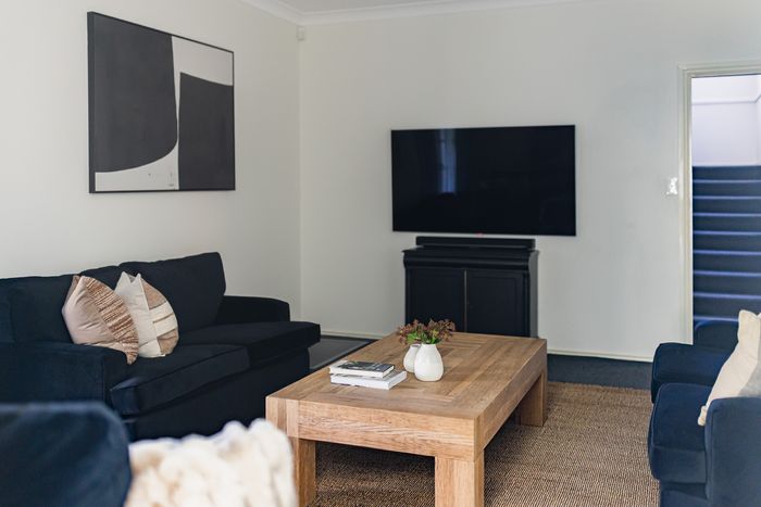 Pindari is a large house over two levels. The large open plan lounge with fireplace, kitchen and dining room is north facing and lightfilled, and is the central point of the home. This room opens up to the entertaining area and backyard. There is an additional TV room adjacent to this room, and is great room for kids to hang out.