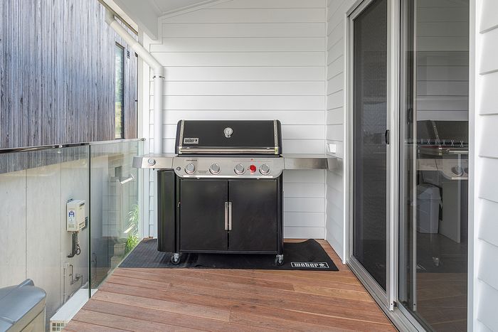 There is a large upstairs deck area with bbq and dining setting. Downstairs is a separate deck area and small lawn - fully fenced. Seven Mile Beach is an easy 5 minute walk away. An outdoor shower is great to wash the sand off after a day at the beach!