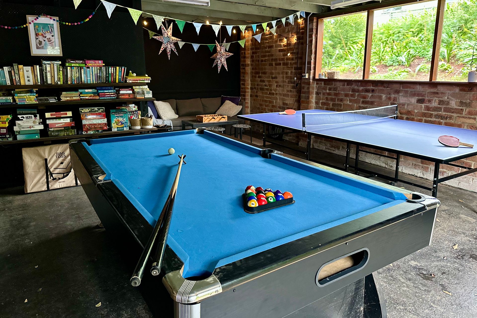The garage has been converted into a beautiful games room and has a pool table and ping pong as well as board games and a small collection of books.