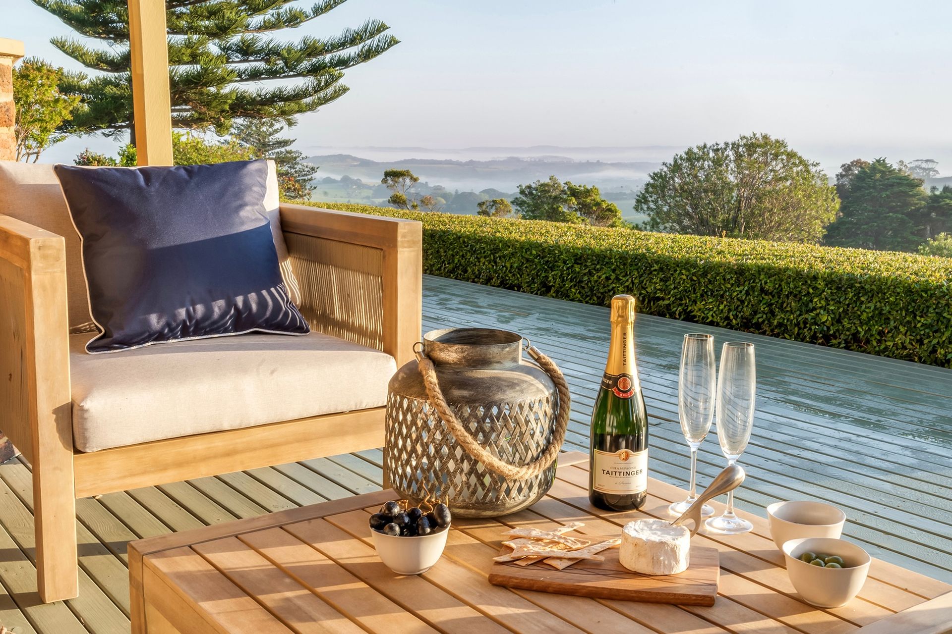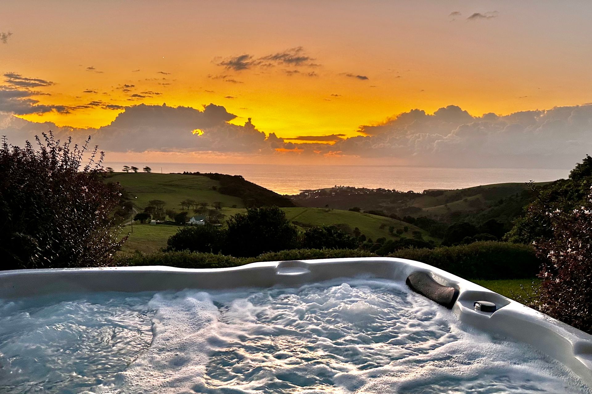 Saddleback Grove is a beautiful country home perched on a hilltop with dramatic rural and coastal views descending beneath it. Suited to the most discerning of guests this stunning property is styled and decorated to an excellent standard and features a spa with a view like no other.
