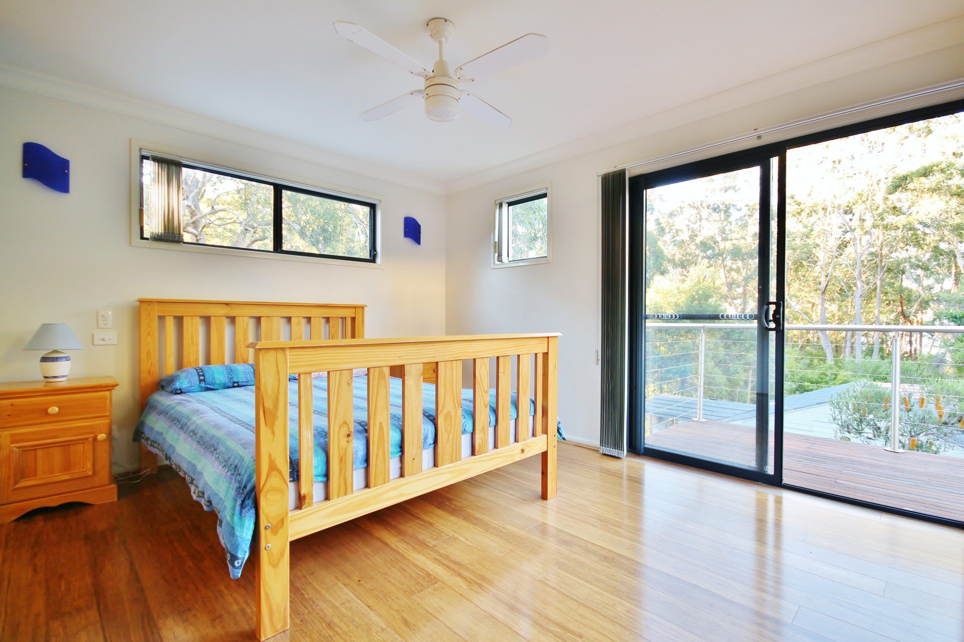 Sand Water is a three bedroom home encompassing two queen beds and two singles. It has an open plan living and dining area that fronts on to the deck via sliding doors. The kitchen is well appointed with a breakfast bench. All the rooms are well lit and the master bedroom has a large en-suite and a private balcony with water views.