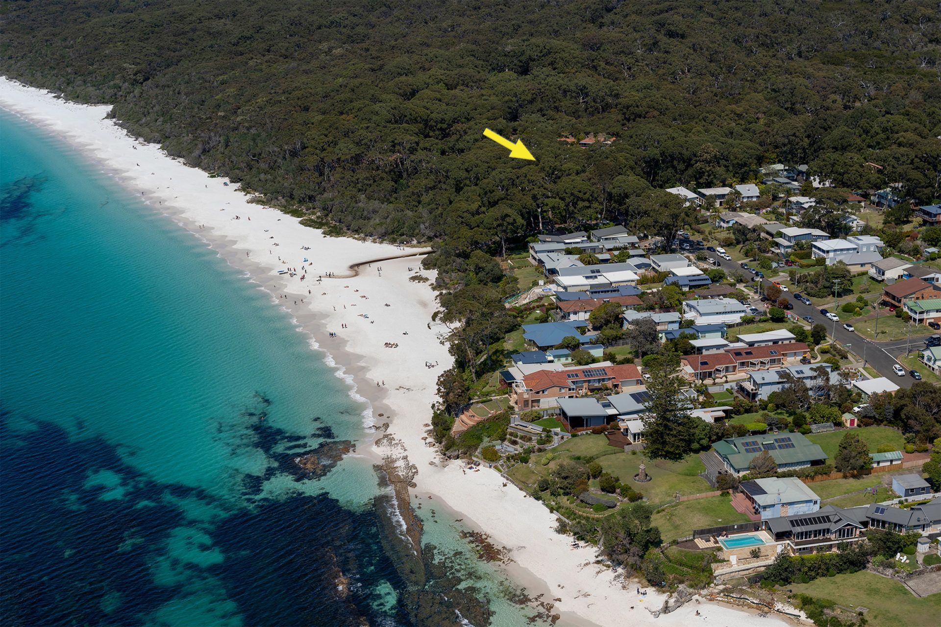 Sand Water is located at the southern end of Cyrus Street close to the main entrance of Hyams main beach and around the corner from the Hyams Beach Cafe. Accessing the beach is easy by walking to the end of Listel Court and down the bush track to the beach.