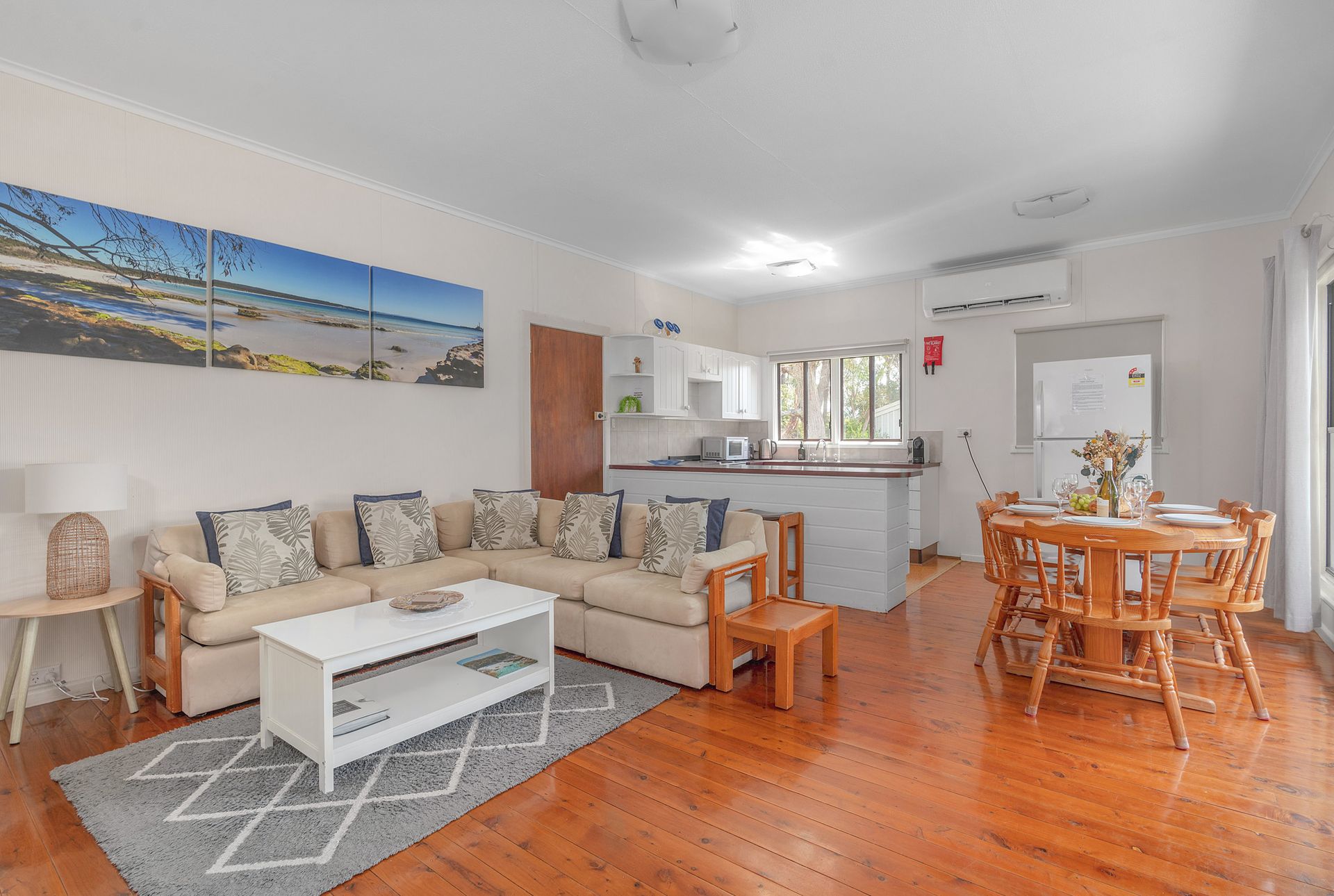 Located within walking distance to the local beaches and the cafe, this relaxed cottage is in a quiet street bordering the National Park. This comfortable 3 bedroom cottage accommodates up to 6 people. Great for the family with a large rear yard or for just a quiet getaway for two.