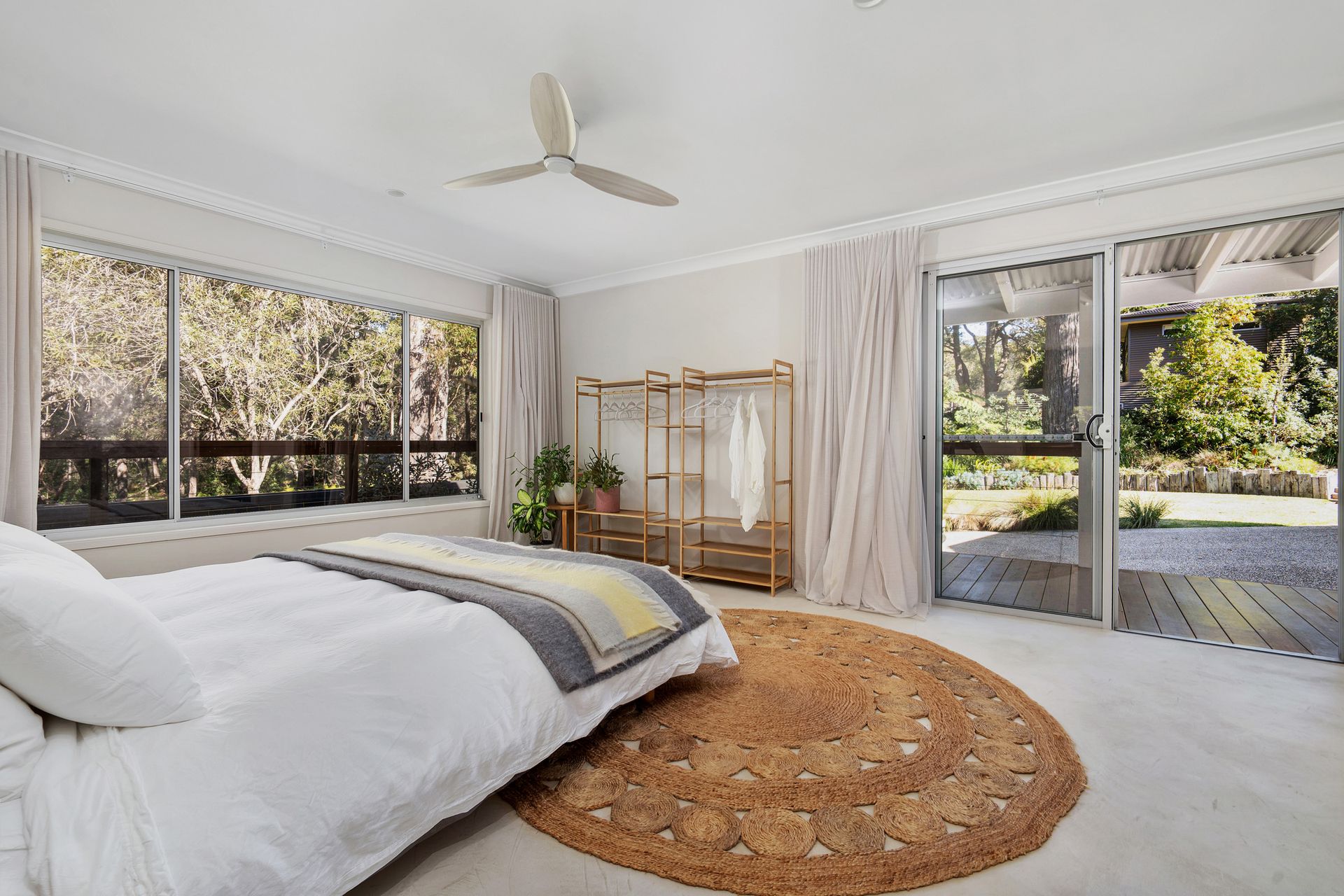 Scandi Beach House has a large outdoor deck with BBQ and lounge seating that looks out to the treescape of the bordering nature reserve. There is a lawn area and and beautiful native plants and trees. Greenfields Beach is a 2 minute walk. There are multiple walking tracks at your doorstep, that lead to the nearby beaches of Chinamans Beach, Nelson Beach, Blenheim Beach and further afield is Hyams Beach where there is a great local cafe!