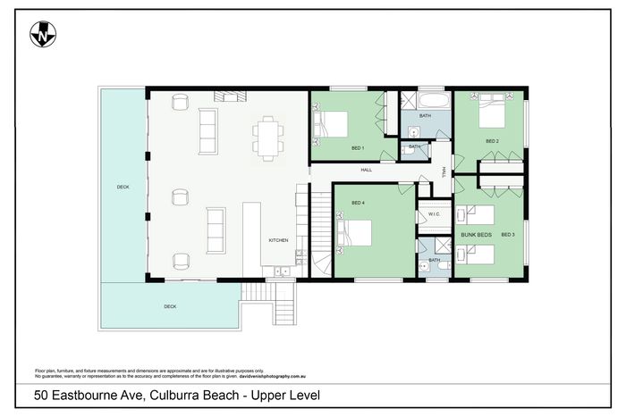 Calling all surfers and beach lovers! Sea Dream is a large, spacious, pet friendly beach house, with direct access to Warrain Beach, Culburra. Sea Dream a casual, comfortable and affordably priced house that sleeps 11 across 4 bedrooms. Pick up your surfboard and wander down to the beach via an access path in the next door public car park. You can be down on the beach in minutes! Sea Dream has a modern kitchen and a large living / dining / kitchen area that opens directly onto the covered outdoor area with outdoor setting and BBQ. Generously proportioned and with a games room with pool table, families and friends and their pets will have a relaxing and enjoyable holiday by the beach!