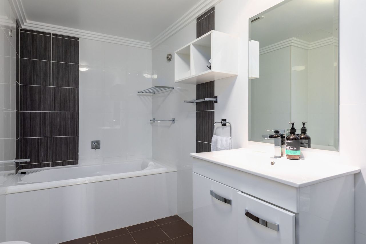 Sebel Harbourside 301 is a King bed-sized studio apartment that features an open plan layout, ensuite bathroom including bath and separate shower.