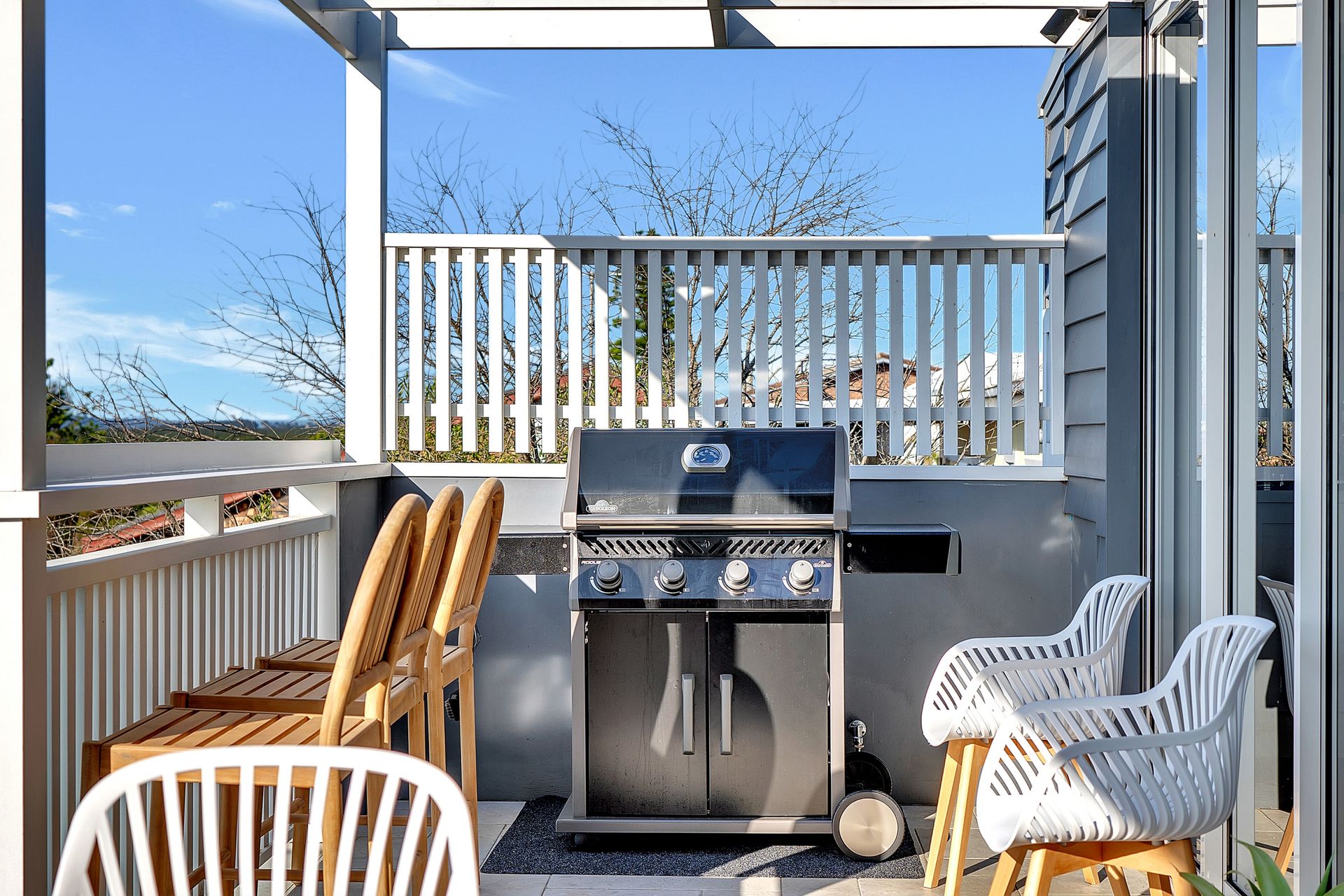 Seven Mile View has two outdoor areas. The upper level deck has an outdoor dining table and lounge with outdoor TV and a BBQ and provides a perfect spot to take in the magnificent panoramic views of Seven Mile Beach. The lower level deck has a swim spa, outdoor dining table and lounge. Instructions for the spa will be sent in your pre-arrival email. There is an outdoor shower for when you return from the beach.